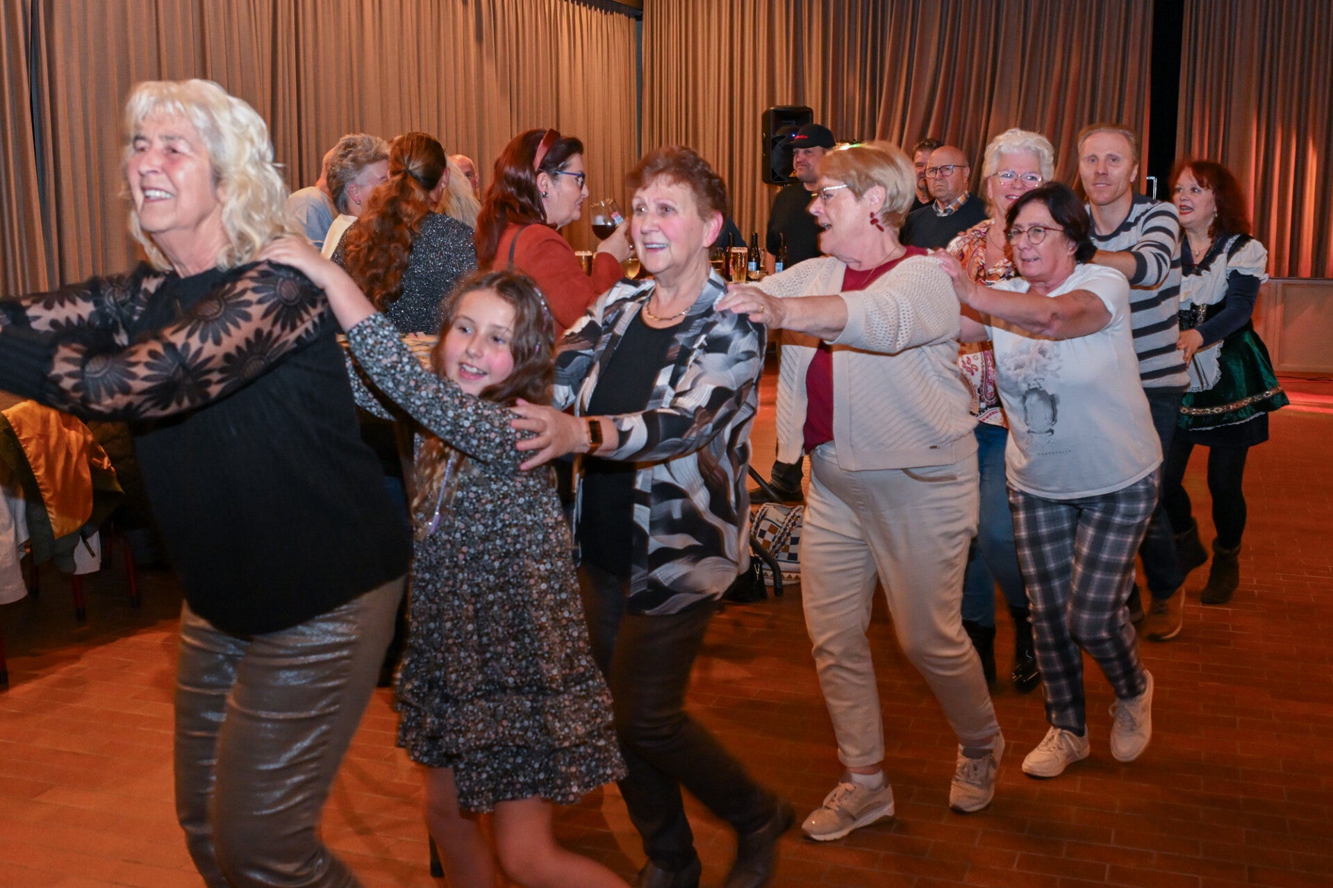 Voor de muzikale omlijsting zorgde de plaatselijke artiest Harri Hendriks (foto 2 onder). Hij speelt al 57 jaar muziek en bracht een gevarieerd repertoire: Nederlandstalige klassiekers, plezierige amusementsmuziek en zelfs verzoekjes – waaronder Baila Baila en populaire meezingers zoals Engelbewaarder. Voor ieder wat wils dus, en dat voelde het publiek duidelijk. Er werd volop gedanst en ook de polonaise trok door de zaal.