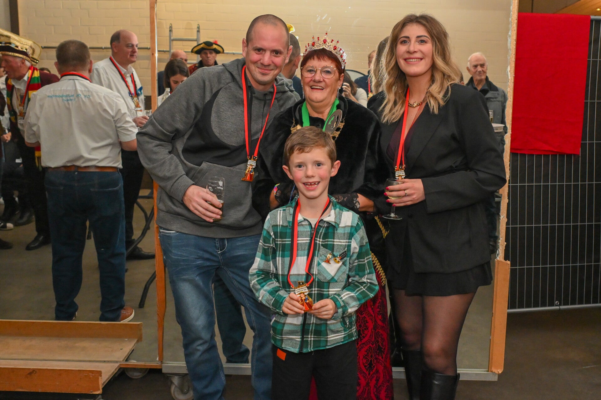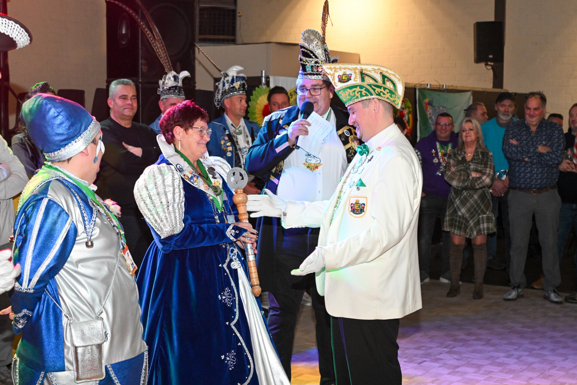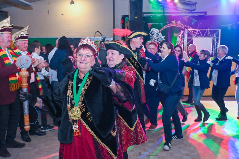 Daarna begon het ceremoniële deel. Eerst werden adjudant Carlo en hofdame Gerdi aangekleed, met de linten, sjerpen en insignes die horen bij hun rol. Pas daarna was het moment daar om de vorstin zelf aan te kleden en te kronen. Haar mantel werd zorgvuldig omgeslagen, het lint recht gelegd, en de spanning in de zaal werd bijna tastbaar toen haar kroontje volgde. Dat kroontje werd niet zomaar opgezet. De moeder van de kersverse vorstin kreeg de eer om dit te doen, zichtbaar geëmotioneerd en trots. Een moment dat bij velen een warme glimlach opriep. Toen Viv vervolgens ook de scepter overhandigd kreeg, was de cirkel rond. Daarmee kreeg ze officieel de macht over Carnaval Lommel terug, dit keer niet als prinses, maar als vorstin.