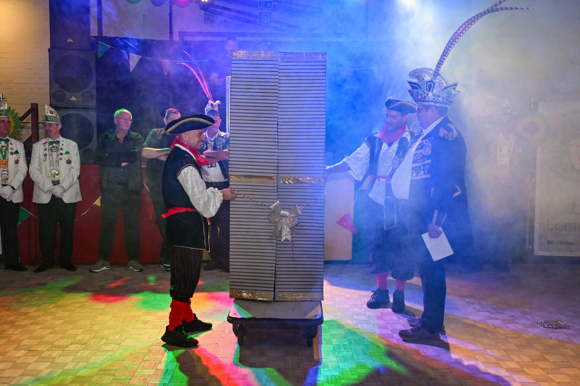 Ronny van Carnaval Lommel stelde de vraag die op ieders lippen lag: waren er kandidaten? Een eerste poging kwam van Xander, maar zijn kandidatuur ging niet door. Het leek even stil in de zaal, tot er plots twee piraten met veel rumoer tevoorschijn kwamen, begeleid door muziek. Ze brachten een opvallende, grote doos mee. Het bleef even spannend wat of wie daarin zat, tot het deksel openging en de nieuwe hoogheid zich toonde: Viv, teruggekeerd – maar in een hogere rol dan voorheen, als vorstin. "Ik ga dit niet alleen doen," zei ze meteen, klaar en vastberaden. Aan haar zijde stonden adjudant Carlo en hofdame Gerdi, die net als zij Lommel dit jaar opnieuw zullen vertegenwoordigen.