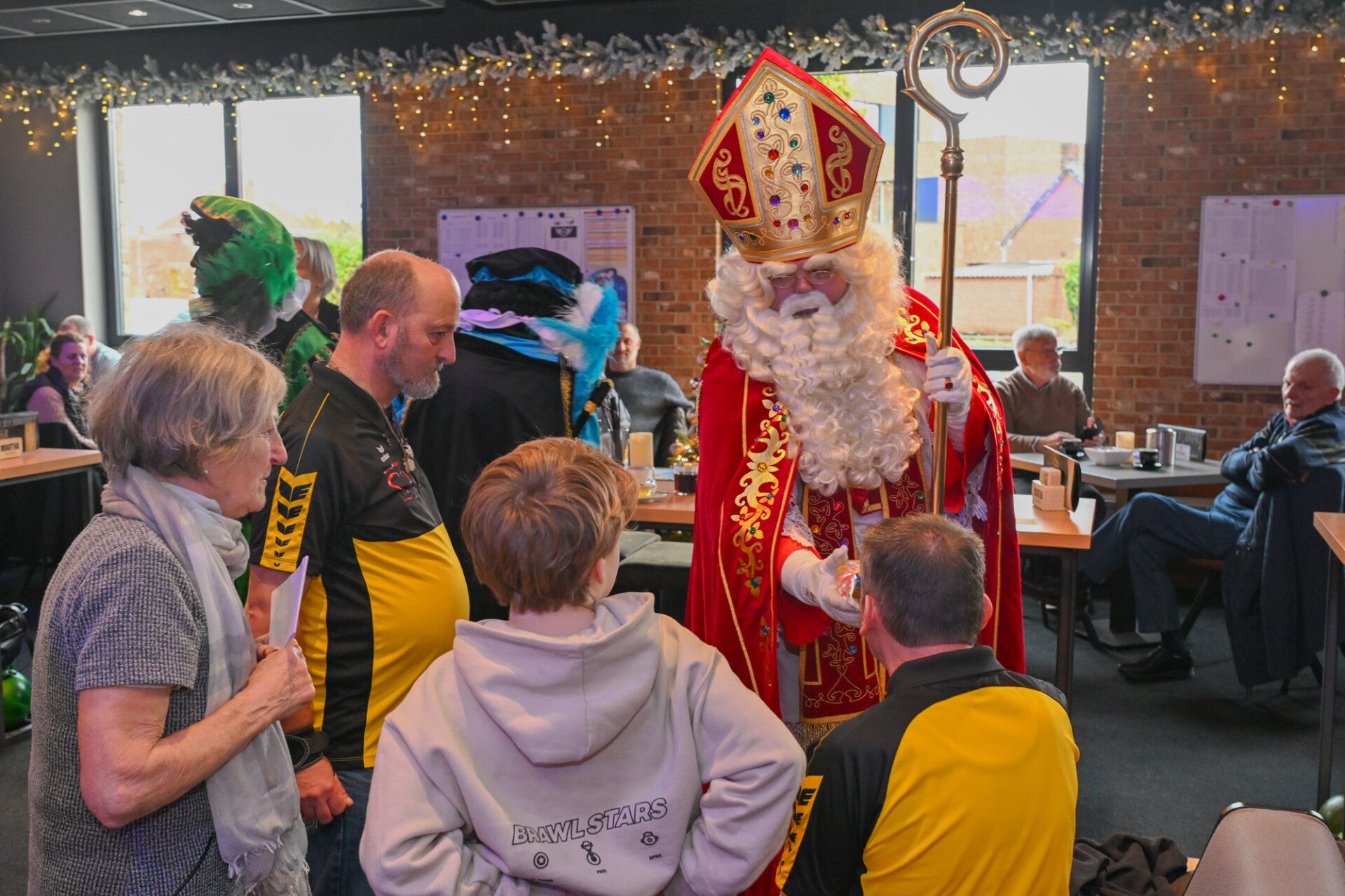 Een paar bowlers konden hun enthousiasme nauwelijks bedwingen. Stoelen gingen opzij, kegels wachtten even geduldig en enkele spelers sprongen recht zodra ze de Sint zagen. Sinterklaas en zijn vrolijke Pieten wandelden rustig van baan tot baan, met zakken vol lekkers die ze gul uitdeelden aan elk Mispo-lid.