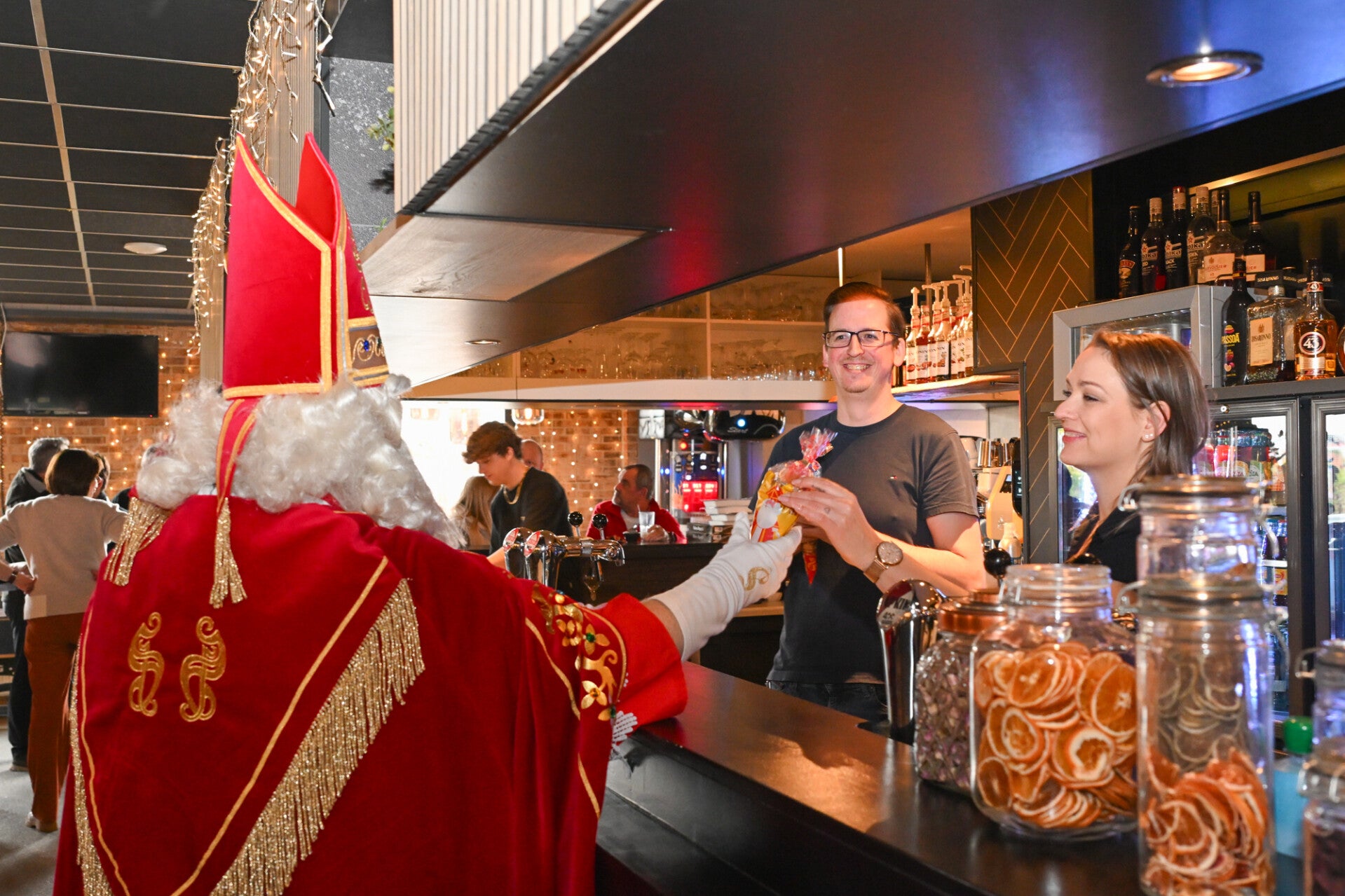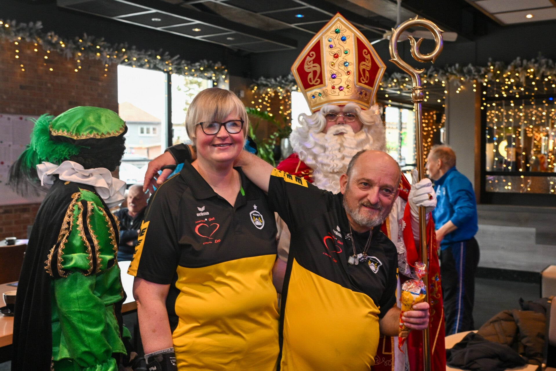 Er werd gelachen, geklapt en natuurlijk gingen heel wat spelers even op de foto. De Sint poseerde geduldig en de Pieten deelden met zichtbaar plezier hun traktaties uit. Overal verschenen glimlachen en vrolijke reacties.