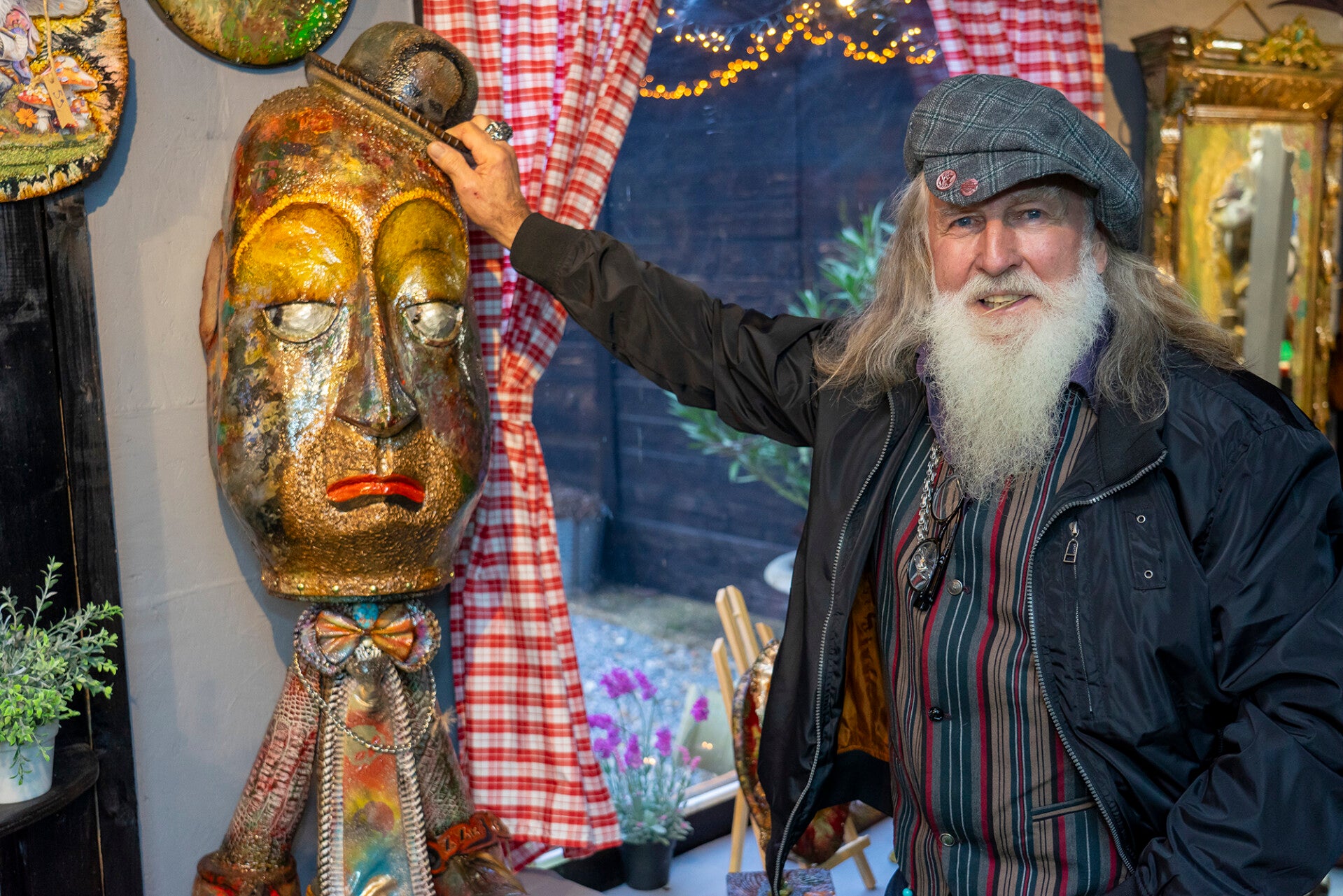 Vandaag kon je bij Marc Baeten (Marcq De Schipper) in de Sloepstraat 5 in de Blauwe Kei terecht voor een kerstmarkt en tentoonstelling. Marc is een kunstenaar die je kan kennen van de pepermolens die hij zo prachtig beschildert. Nu gaat hij een stap verder en maakt hij prachtige koppen en schilderijen. Hij neemt ook spiegels onder handen die hij heel decoratief beschildert. (Foto's Robert Boons)