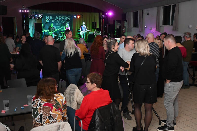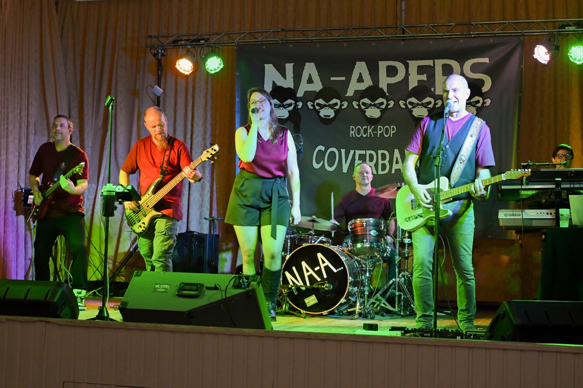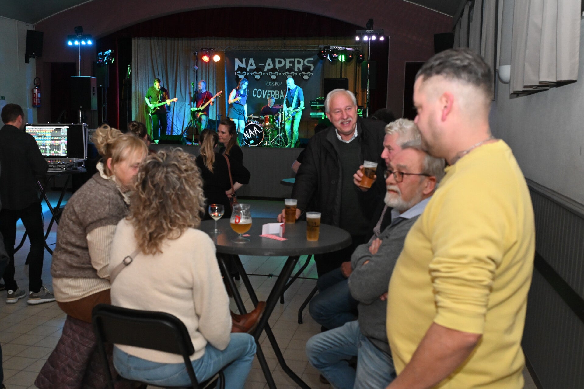 De livemuziek werd verzorgd door Na-Apers (foto 2 onder), die een selectie rock- en popcovers brachten. Later op de avond nam DJ Tom het van hen over met populaire hits uit verschillende periodes, waardoor de dansvloer de hele avond actief bleef.