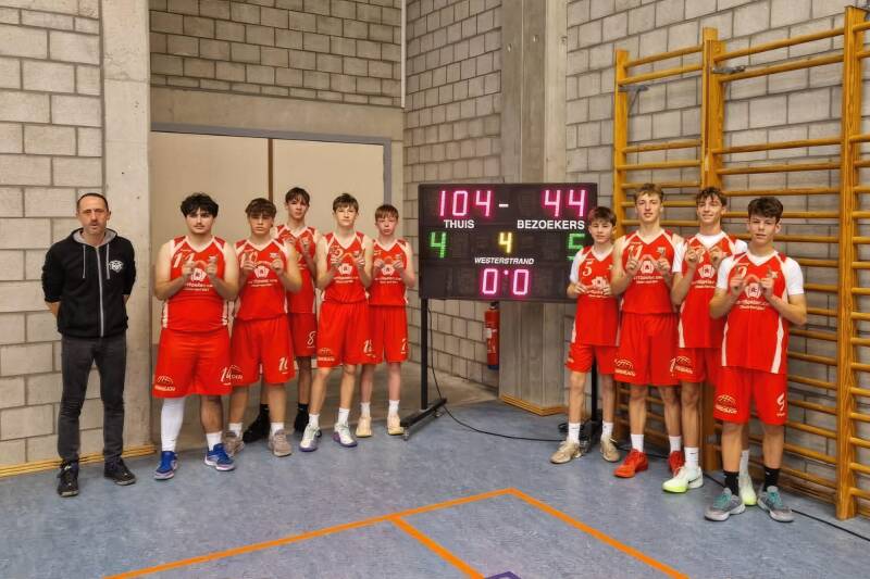 De J16B (niveau 3) waren vorig weekend al zeker van de kampioenstitel, maar die hebben ze gisteren nog wat meer glans gegeven door met maar liefst 104-44 te winnen van Bree Basket. Ze zijn dus helemaal ongeslagen kampioen en hebben het maximum van 30 punten.