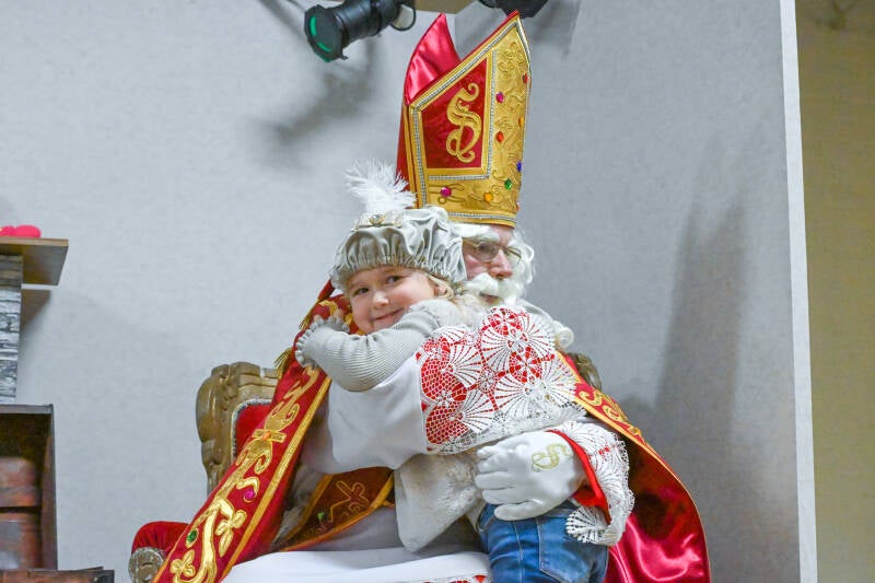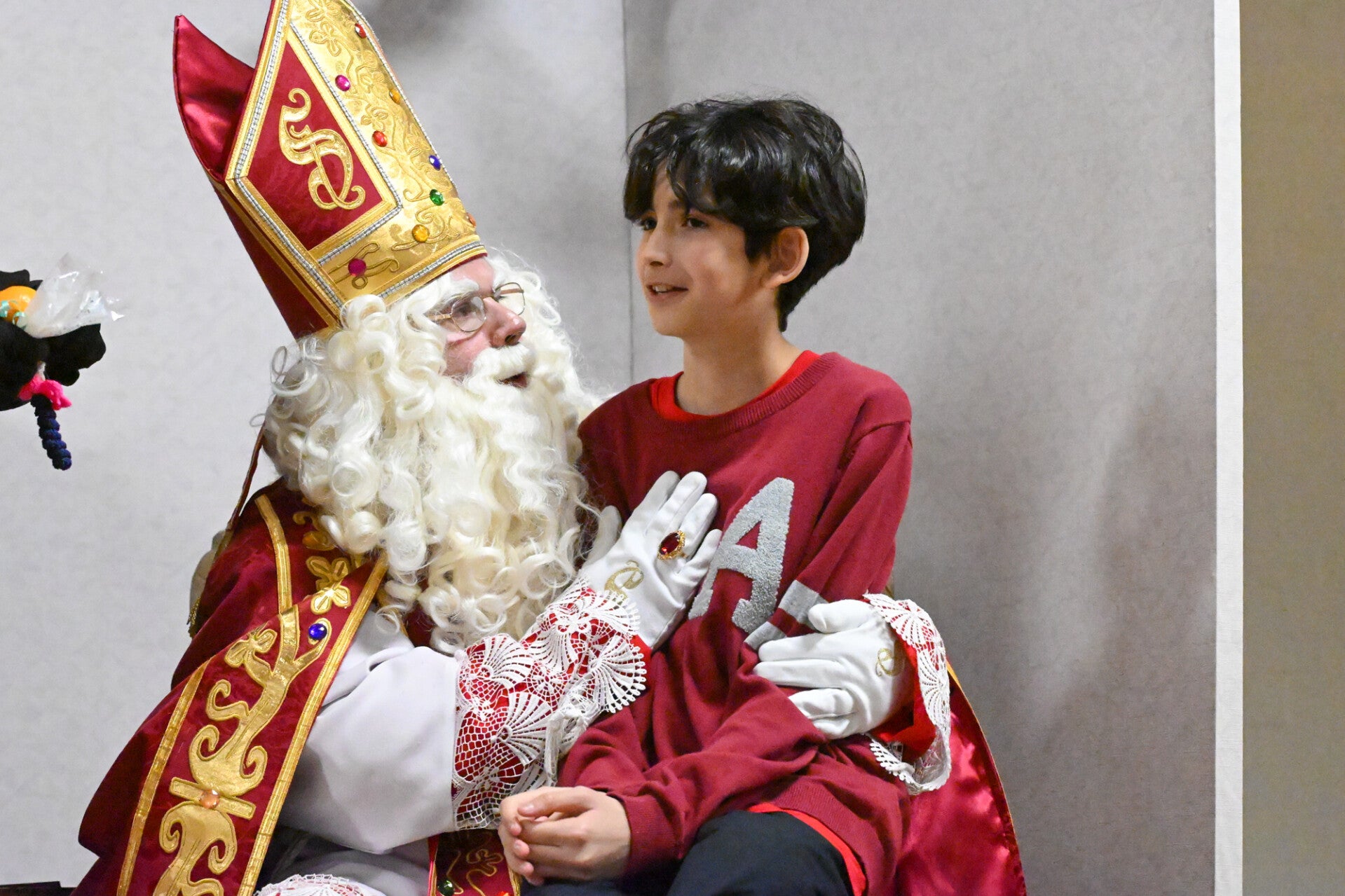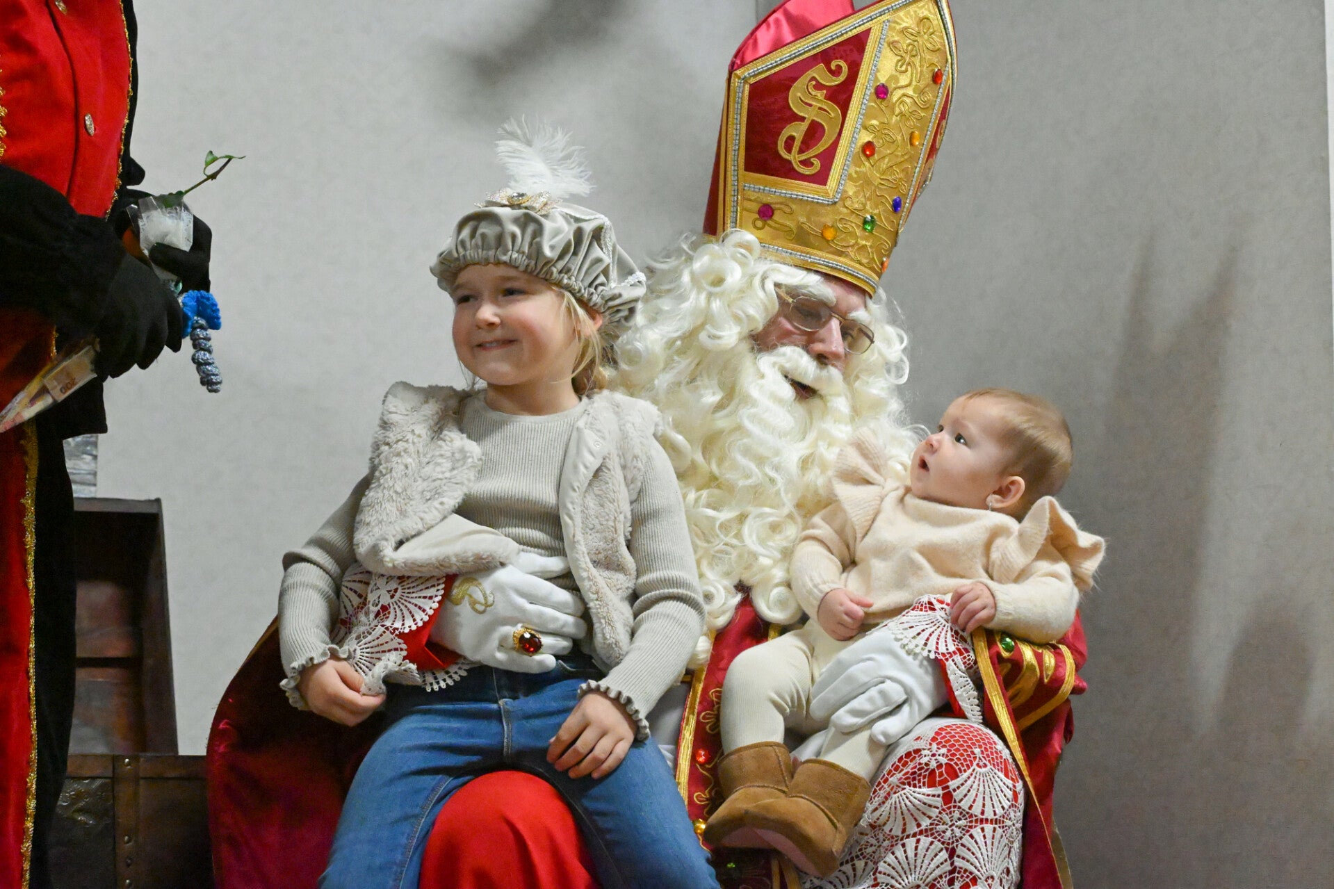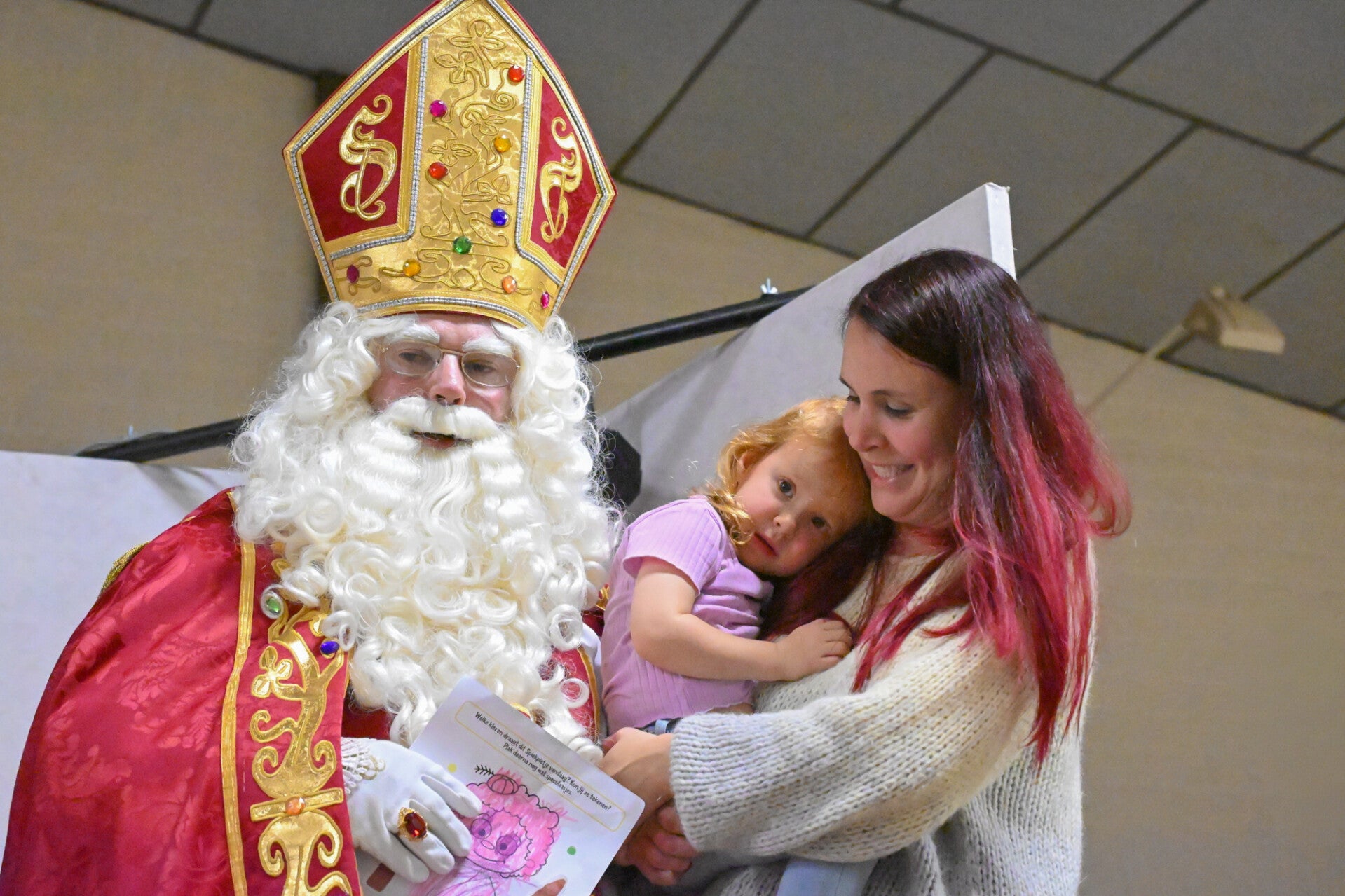 Daarna kreeg elk kind de kans om bij Sinterklaas langs te gaan voor een kort gesprek, een foto, een snoepzak en een cadeautje. Al waren sommige kinderen wel wat bang van de Sint en hadden ze liever mama heel dichtbij.
