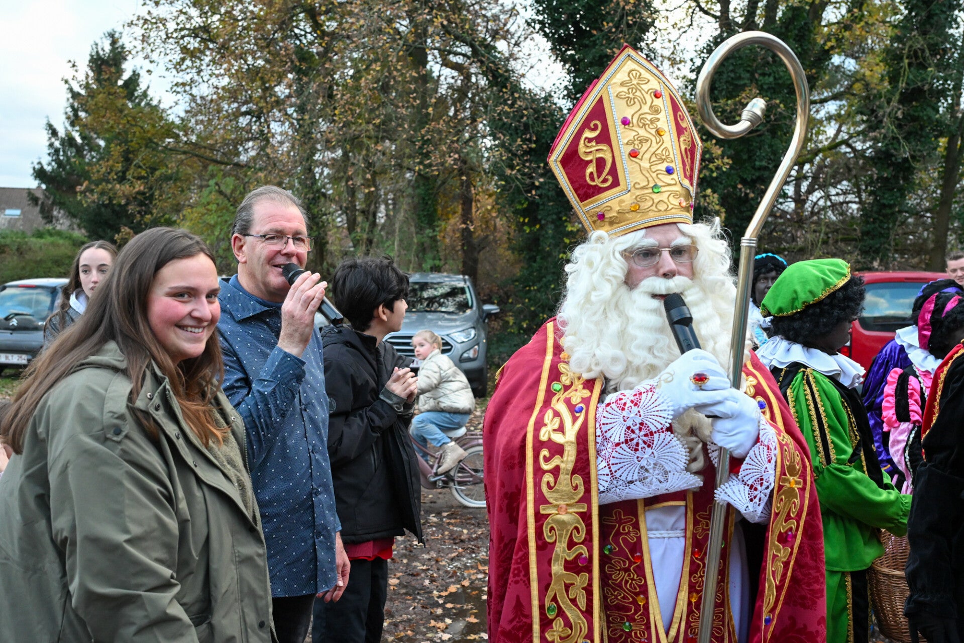 Iets na drie uur arriveerde Sinterklaas samen met zijn Pieten met de auto. De Goedheiligman werd verwelkomd door kinderen, ouders en schepen Loucka Vreys. Binnen werd het feestprogramma voortgezet met onder meer enkele liedjes die gezongen werden voor Sinterklaas.