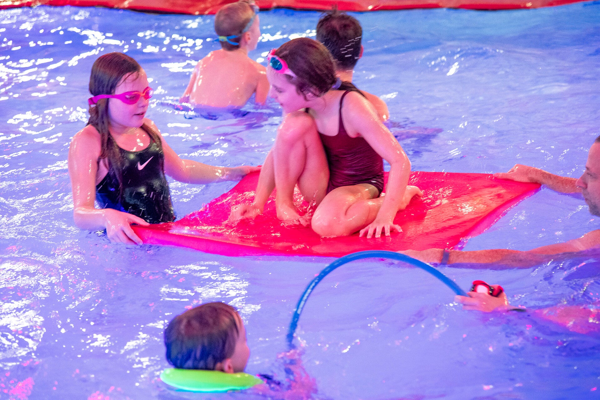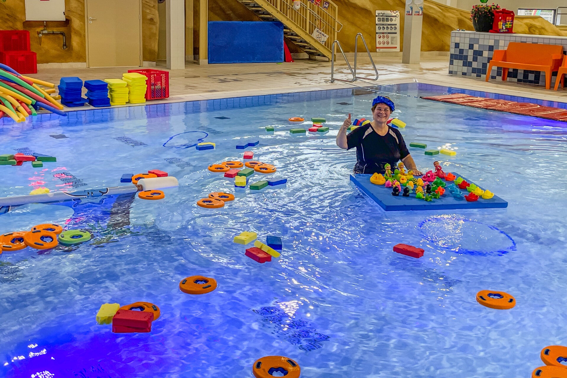 De vrolijke Sinterklaasmuziek zorgde doorlopend voor een gezellige sfeer, en het aanstekelijke enthousiasme van de kinderen vulde het hele bad. Er werd gelachen, gespetterd en vooral héél hard gewerkt.