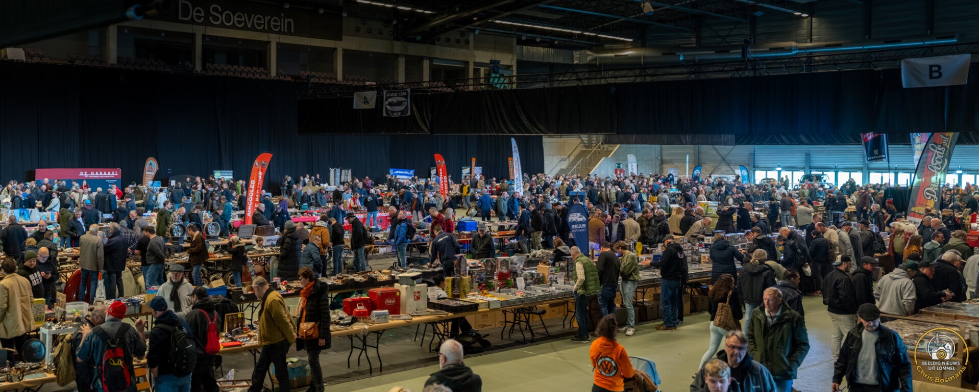De Kempische Keverclub organiseerde vandaag opnieuw haar indoor swapmeet voor VW en VAG in De Soeverein in Lommel, en dat al voor de 29ste keer - de vierde keer in de Soeverein. Wat ooit begon als een kleinschalige meeting voor liefhebbers van luchtgekoelde VW- en VAG-modellen, groeide door de jaren heen uit tot een volwaardig evenement waar vandaag ook watergekoelde wagens meer dan welkom zijn. (Foto's Chris Bosmans)