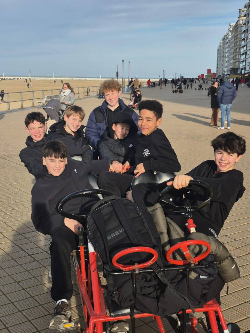 De U14A moest op zaterdagmorgen spelen tegen Filou Oostende, maar maakte er meteen een echte teambuildingtrip van. De spelers vertrokken al op vrijdagavond en genoten samen van een gezellige hotelovernachting, een lekker avondmaal, een stevige portie go-kartplezier op de Oostendse dijk én natuurlijk een strandwandeling — zeehonden inbegrepen.