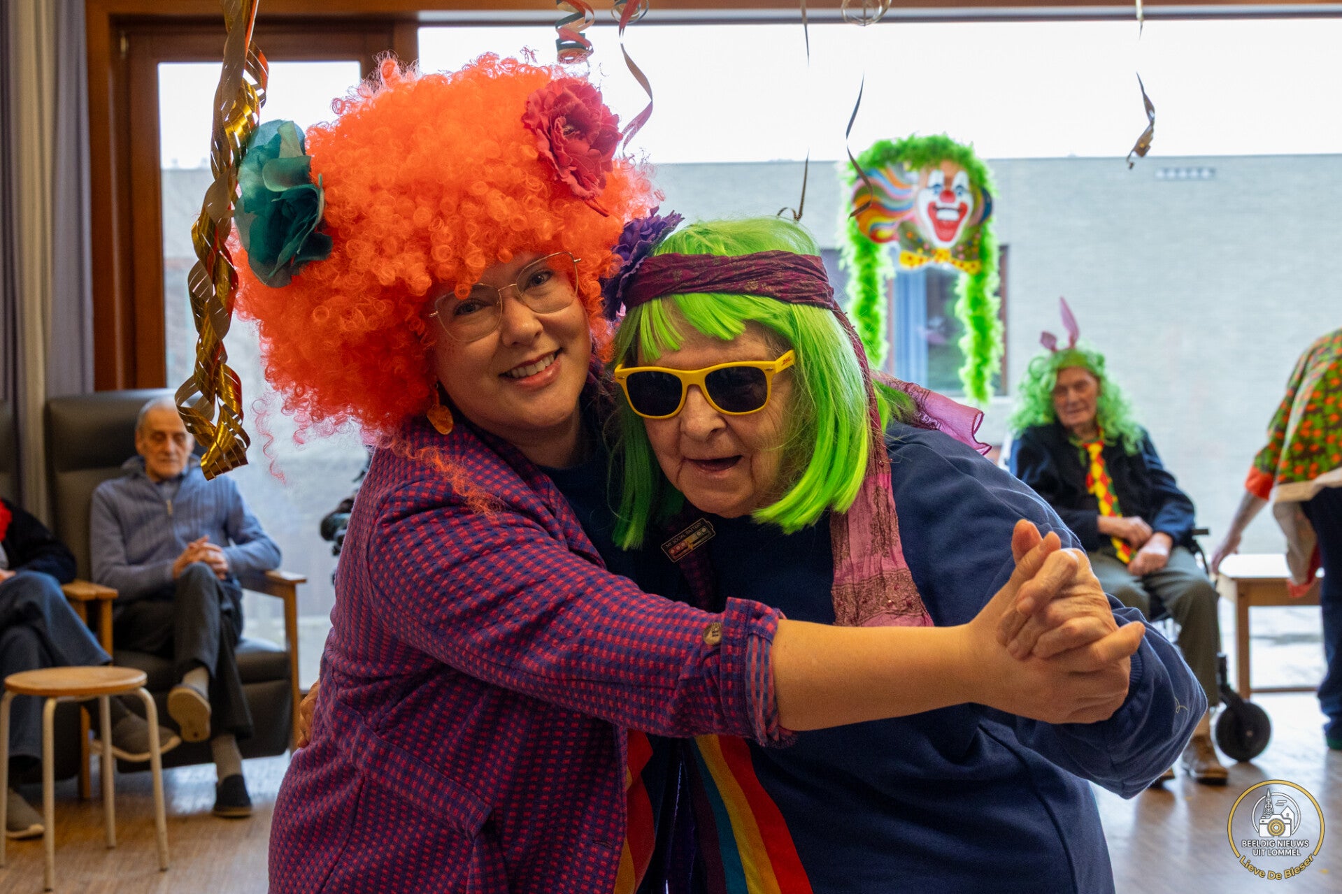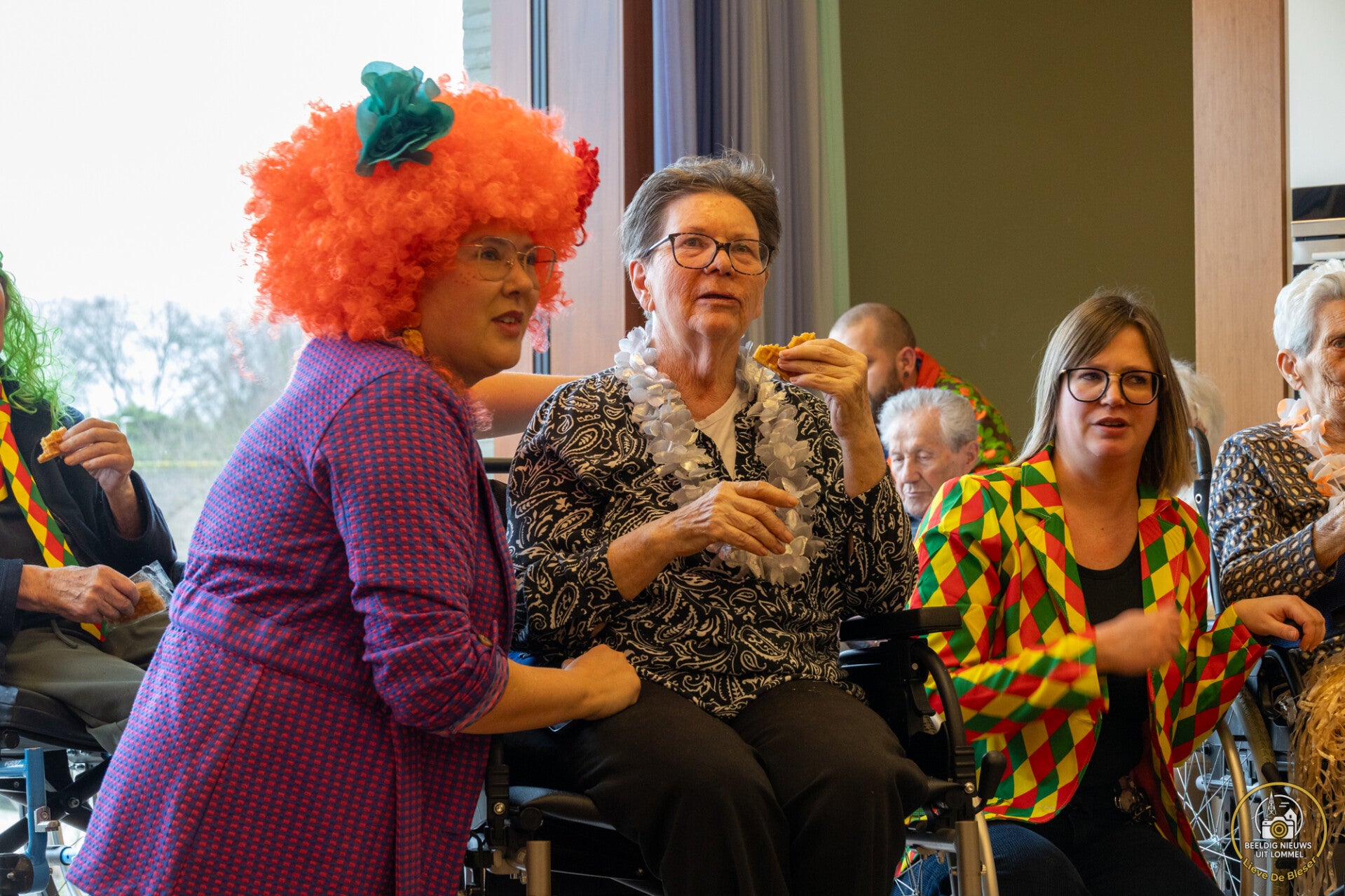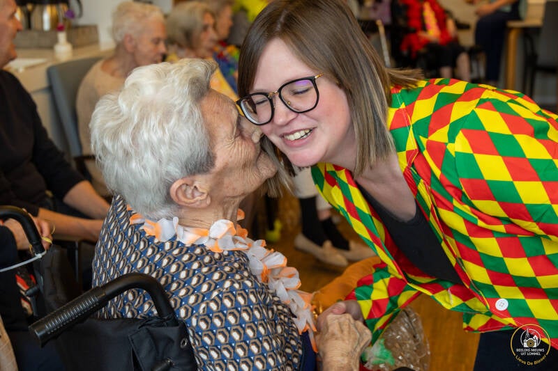 Afgelopen week waren er al carnavalsvieringen in het Kapittelhof en in Ploegdries. "Dus," zo dachten ze in woonzorgcentrum Hoevezavel, "mogen wij toch ook wel carnaval vieren!" Daarom nodigden ze in afdeling De Berk Vorstin Viv I, haar adjudant Carlo en hofdame Gerdi, samen met Ronny Geysen van Carnaval Lommel uit om een feestje te bouwen in de afdeling. Vorstin Viv I gaf de bewoners een heerlijke wafel, die ze allemaal lekker opsmikkelden. (Foto's Lieve De Bleser)