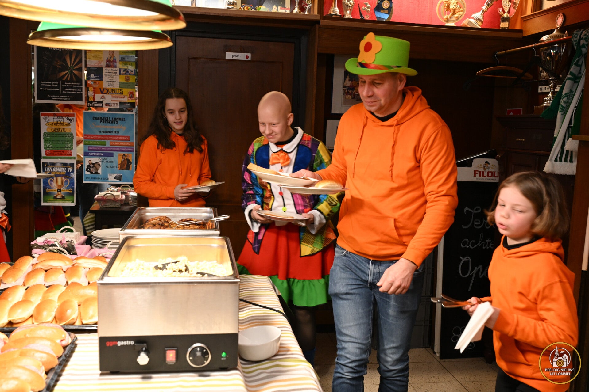 Met een goedgevuld bord en een gezellige sfeer werd er volop genoten van het ontbijt. Voor velen was het de ideale voorbereiding om met volle energie te kunnen starten aan de kinderstoet in Lutlommel.