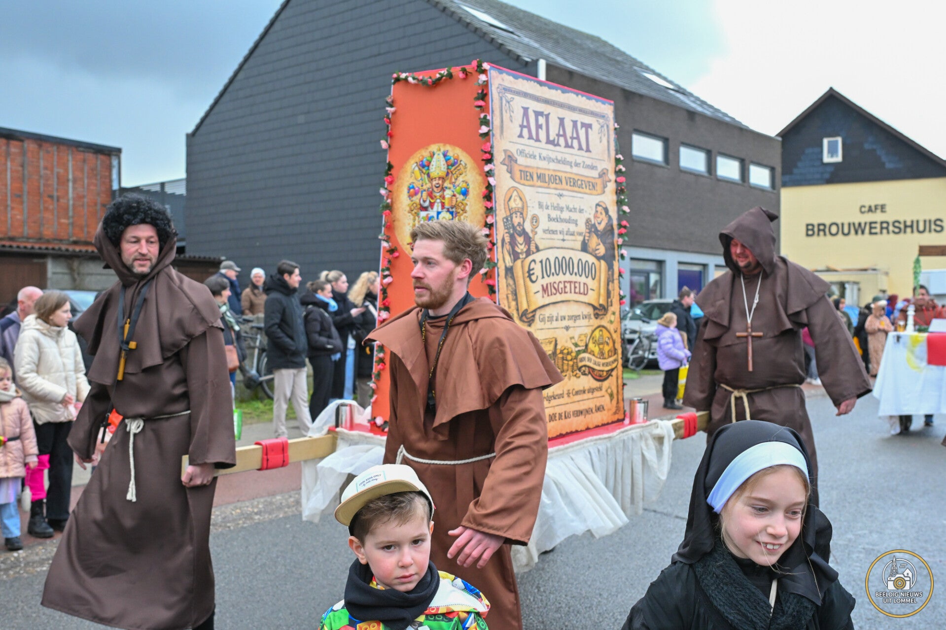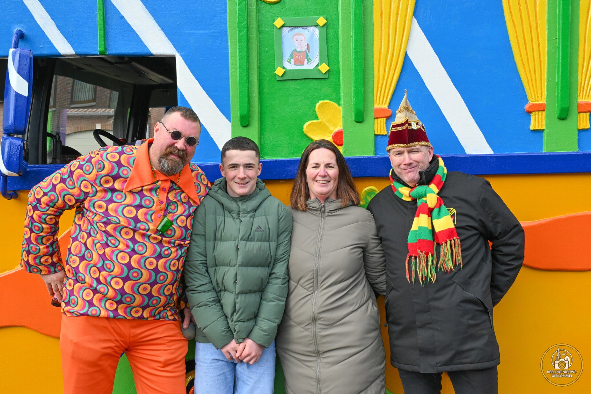 Carnavalsvereniging De Braspappies bracht ook dit jaar een ontroerend eerbetoon aan Bent, het broertje van Lars en zoontje van Tine en Peter, die overleden is. Omdat Bent gek was op carnaval, hangt zijn foto elk jaar op de wagen van KV De Braspappies (foto 3 onder). Zo kan hij elk jaar toch nog een beetje meevieren.