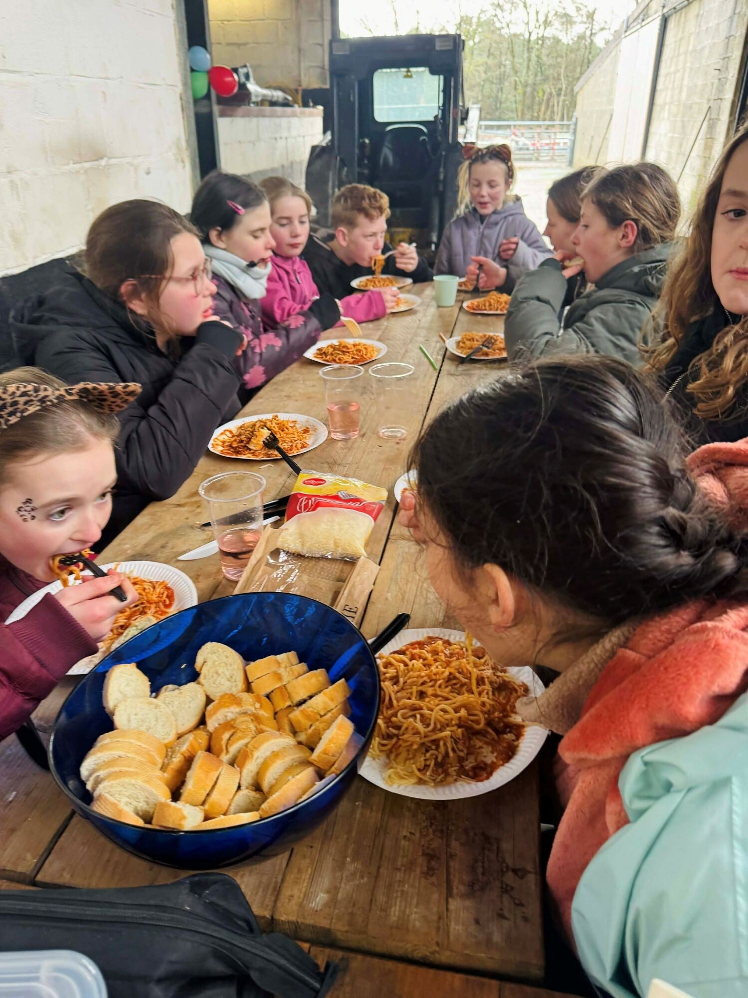Na het middagmaal op dag één, waarbij ze gezellig aanschoven voor een dampend bord spaghetti, trokken de ruiters richting piste voor een namiddag vol rijplezier, tot aan het vieruurtje. Daarna werd er samen gesmuld van een tussendoortje en hielpen de deelnemers enthousiast mee met het voederen van de paarden. Ook tussen de activiteiten door bleef de energie hoog. Wanneer de kou even toesloeg, werd er in groepjes gesprongen en uit volle borst “Beertje, beertje” gezongen. Gelach alom.