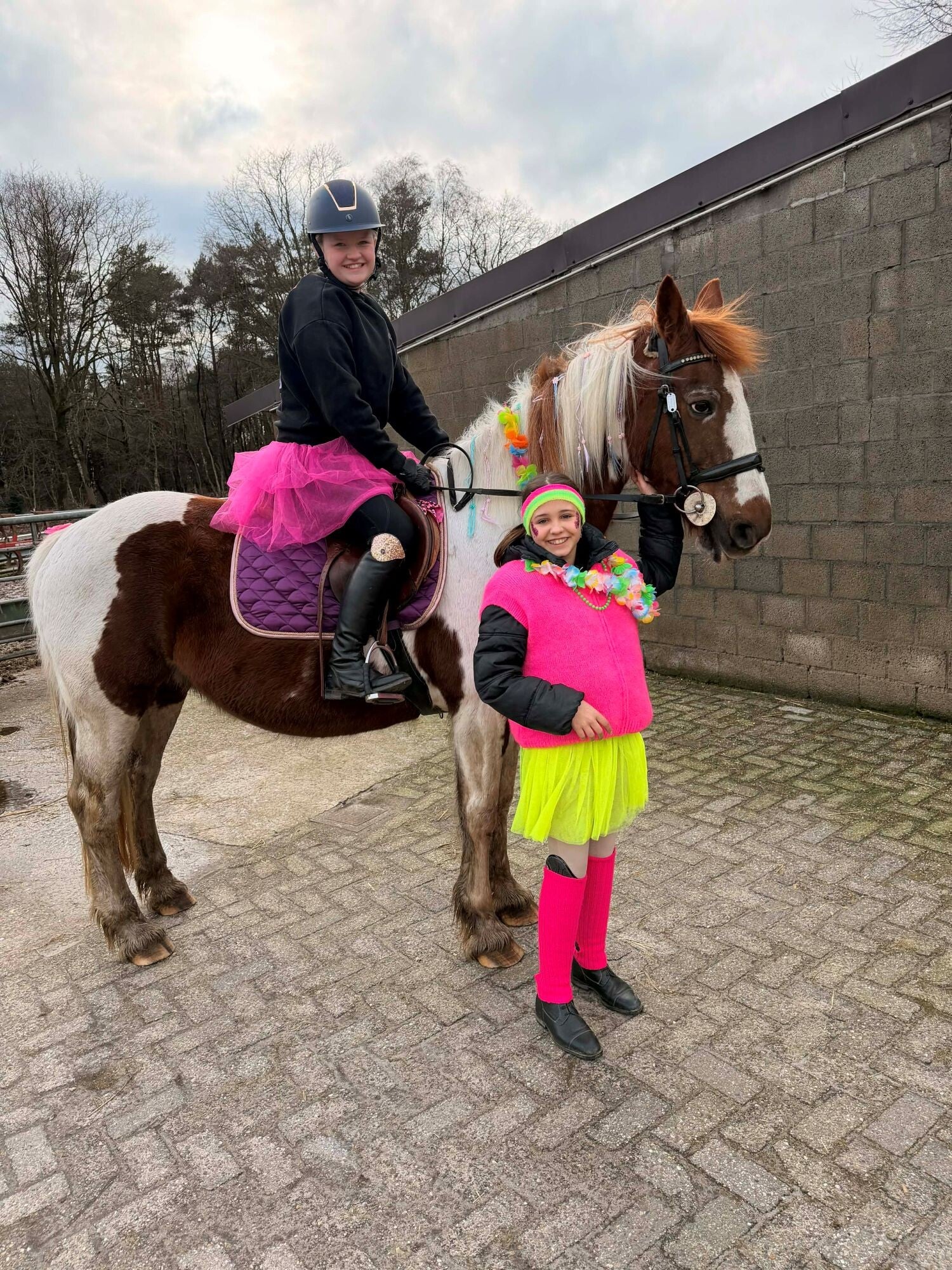 Tijdens de krokusvakantie toverde club De Vlindervallei twee dagen lang haar terrein om tot een bruisend carnavalsparadijs voor tieners met een hart voor pony’s. Donderdag en vrijdag stonden volledig in het teken van paarden, bijleren en vooral samen plezier maken — en dat allemaal in vrolijke verkleedoutfits. Van kleurrijke pruiken tot gekke accessoires: al bij aankomst hing er een feestelijke sfeer.