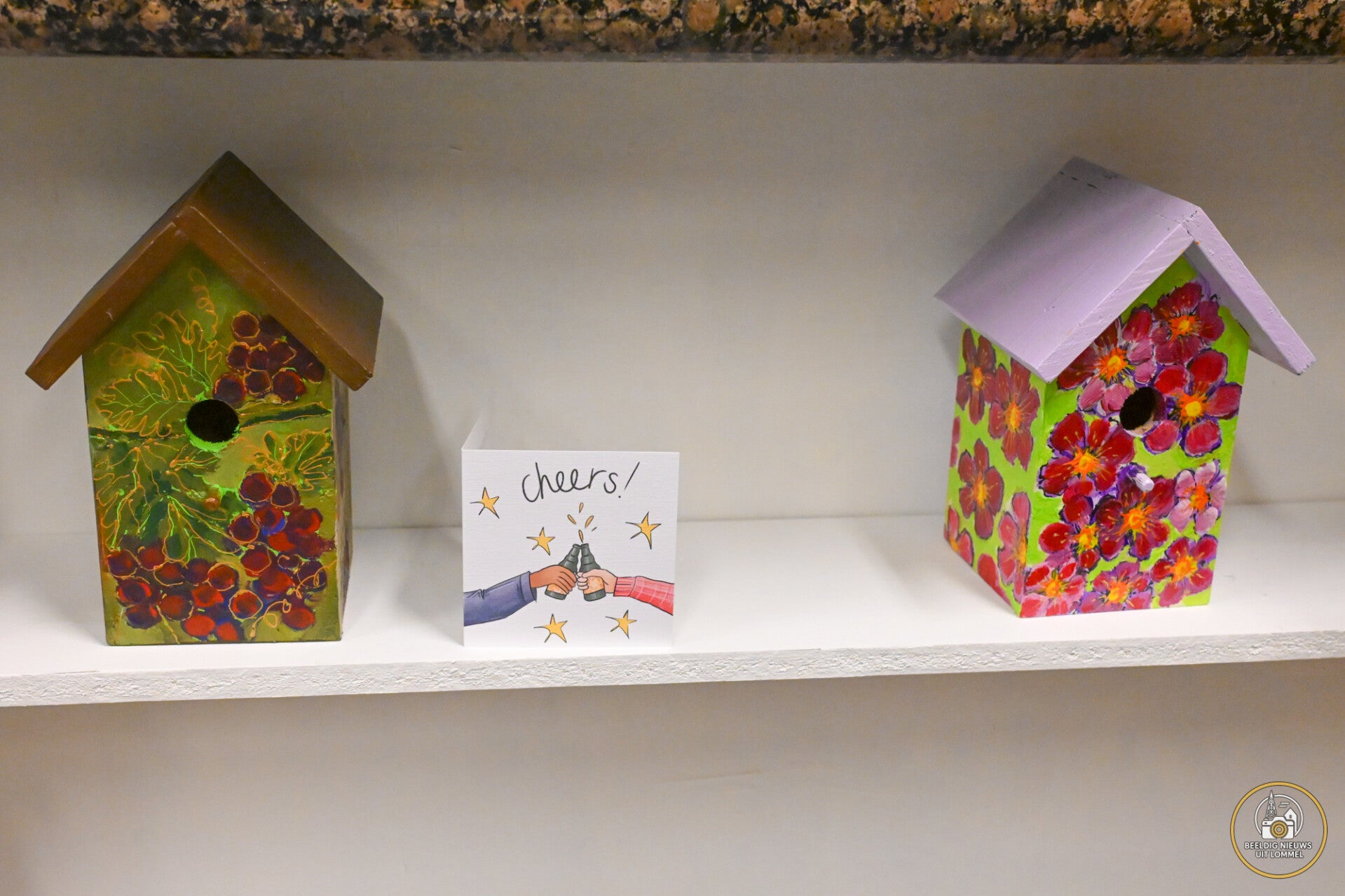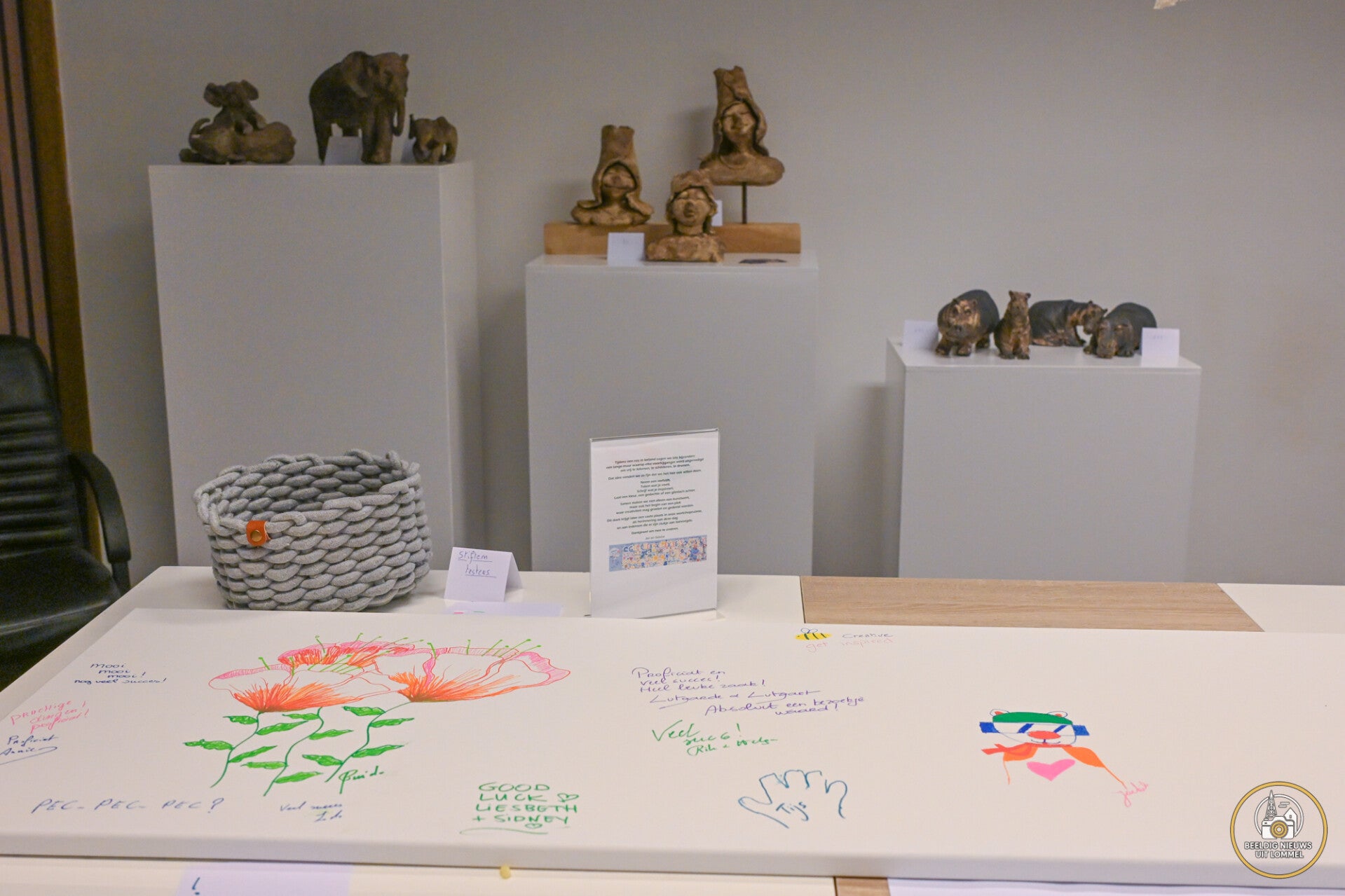 Een bijzonder persoonlijk detail bevindt zich achter de toonbank, waar twee houten beelden opgesteld staan die werden gemaakt door Nelis Mannaerts, de peter van initiatiefnemer Jan. Het linker beeld is het allereerste werk dat hij ooit vervaardigde. Het rechter beeld is het laatste waaraan hij begon, toen hij voor zijn tachtigste verjaardag een blok hout cadeau kreeg. Dat werk kon hij echter nooit afwerken, wat de beelden een extra emotionele betekenis geeft binnen de nieuwe zaak (foto 1 onder).