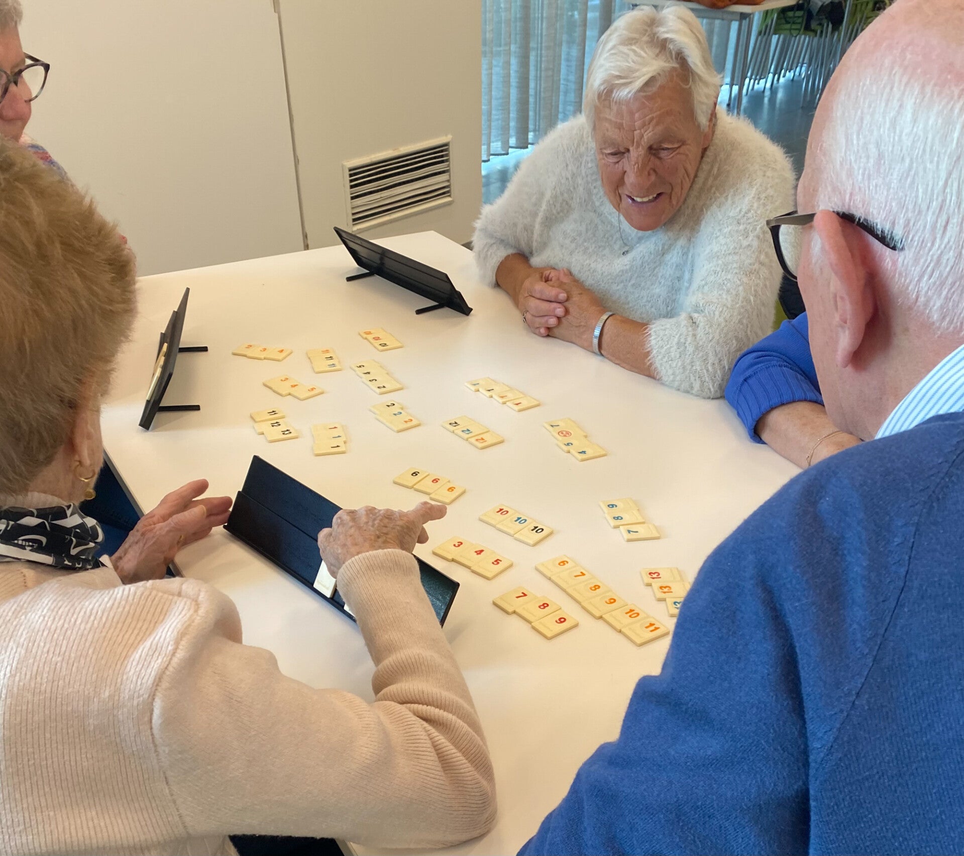 De tafels waren goed gevuld en er werd naar hartenlust gespeeld. Sommigen verdiepten zich in een spannend partijtje Rummikub, anderen kozen voor een kaartspel. Ook Vier op een rij en Mens erger je niet! zorgden voor heel wat fanatieke momenten. Wie het liever wat rustiger hield, kon zijn hersenen laten kraken tijdens een uitdagend memo-spel.