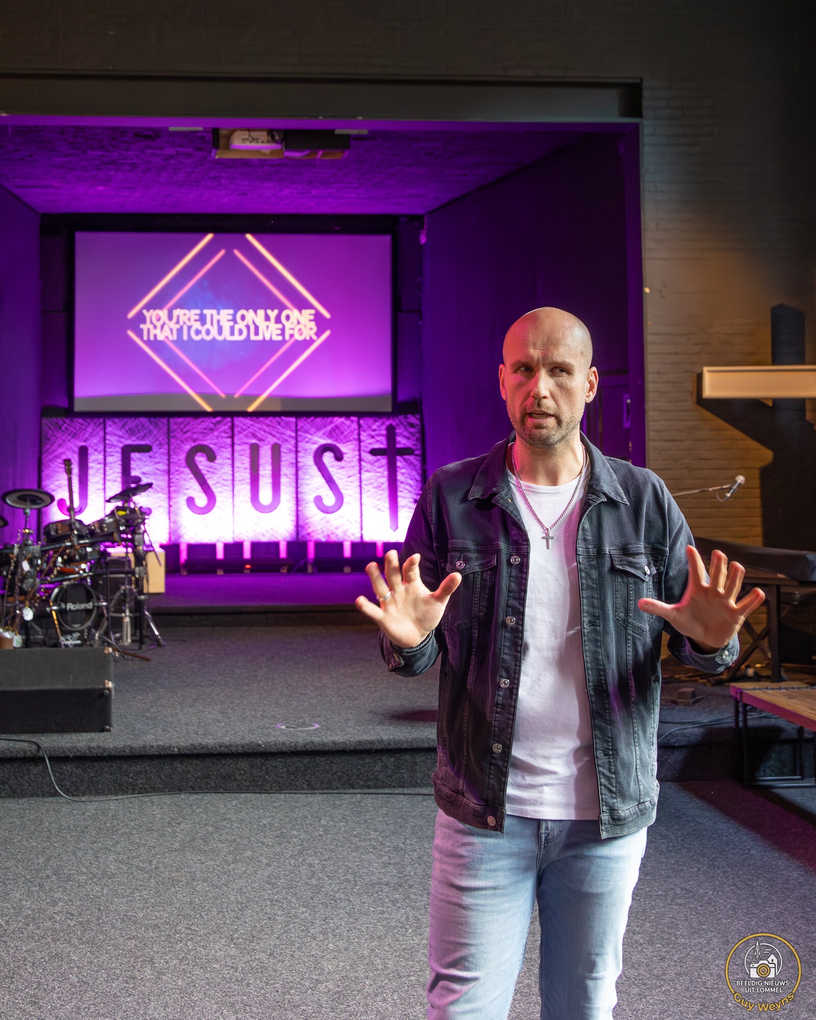 Voorganger Tim Laurey (foto's 1 en 3 onder) schetste tijdens de rondleiding de geschiedenis van de gemeenschap. Open Kerk is een protestants-christelijke kerk in Lommel die ontstond begin jaren tachtig en in Nederland begon, waar kerkdiensten vaak plaatsvonden in gehuurde zalen en sociale gebouwen.