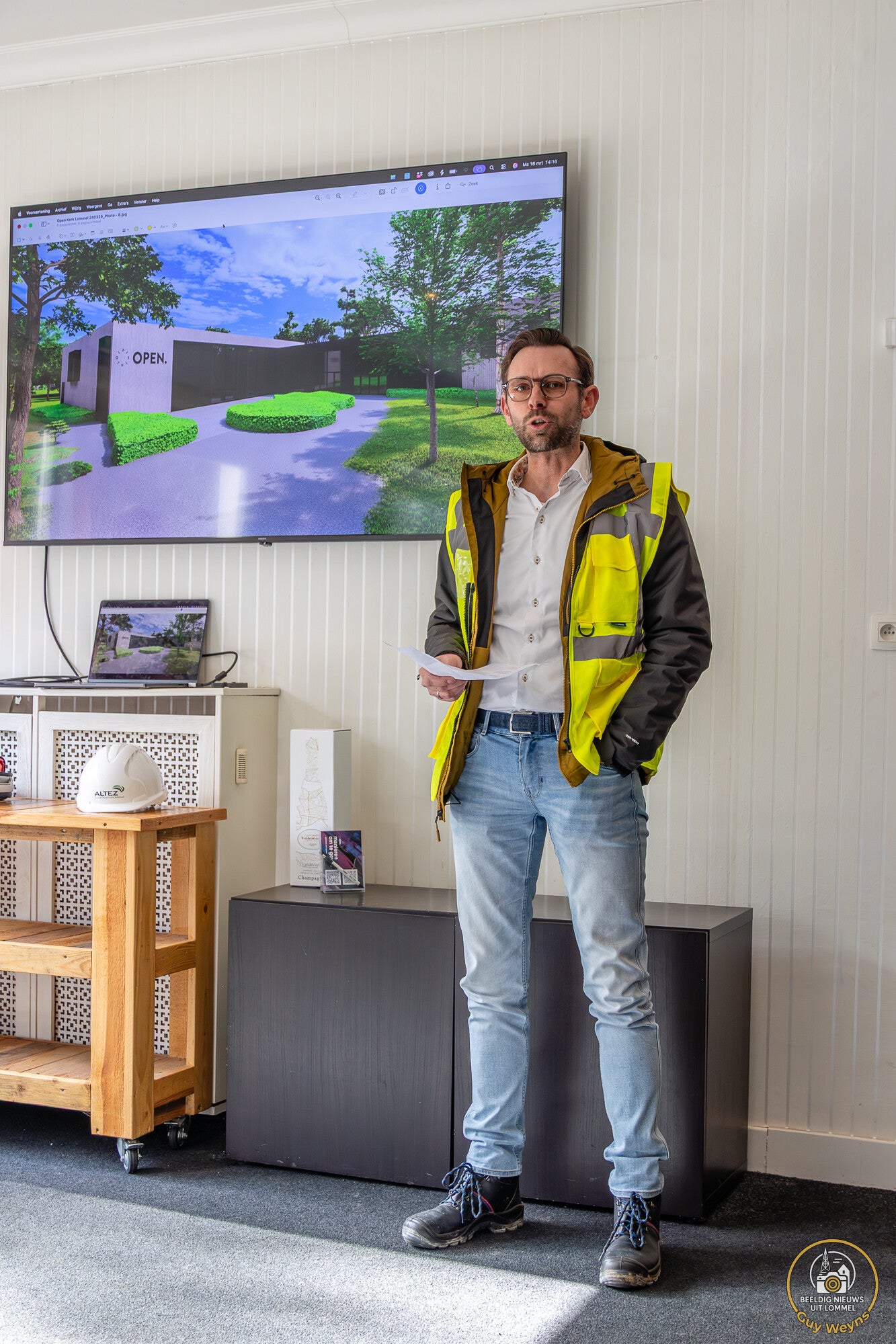 Deze namiddag werd aan de Saskesdreef in Lommel een belangrijke mijlpaal gevierd voor Open Kerk. Met de symbolische eerste kolomzetting start officieel de bouw van een nieuwe kinderkerk, de eerste fase van een groter uitbreidingsproject op de huidige site. Het project werd ontworpen door architectenbureau Buro-B en wordt gerealiseerd door Altez Construction Group. Tijdens het moment kregen genodigden, pers en aanwezigen eerst een rondleiding door het bestaande gebouw, waarna verschillende sprekers hun visie op het project toelichtten. Nadien volgde de symbolische kolomzetting en een receptie. (Foto's Guy Weyns - renders Buro-B)