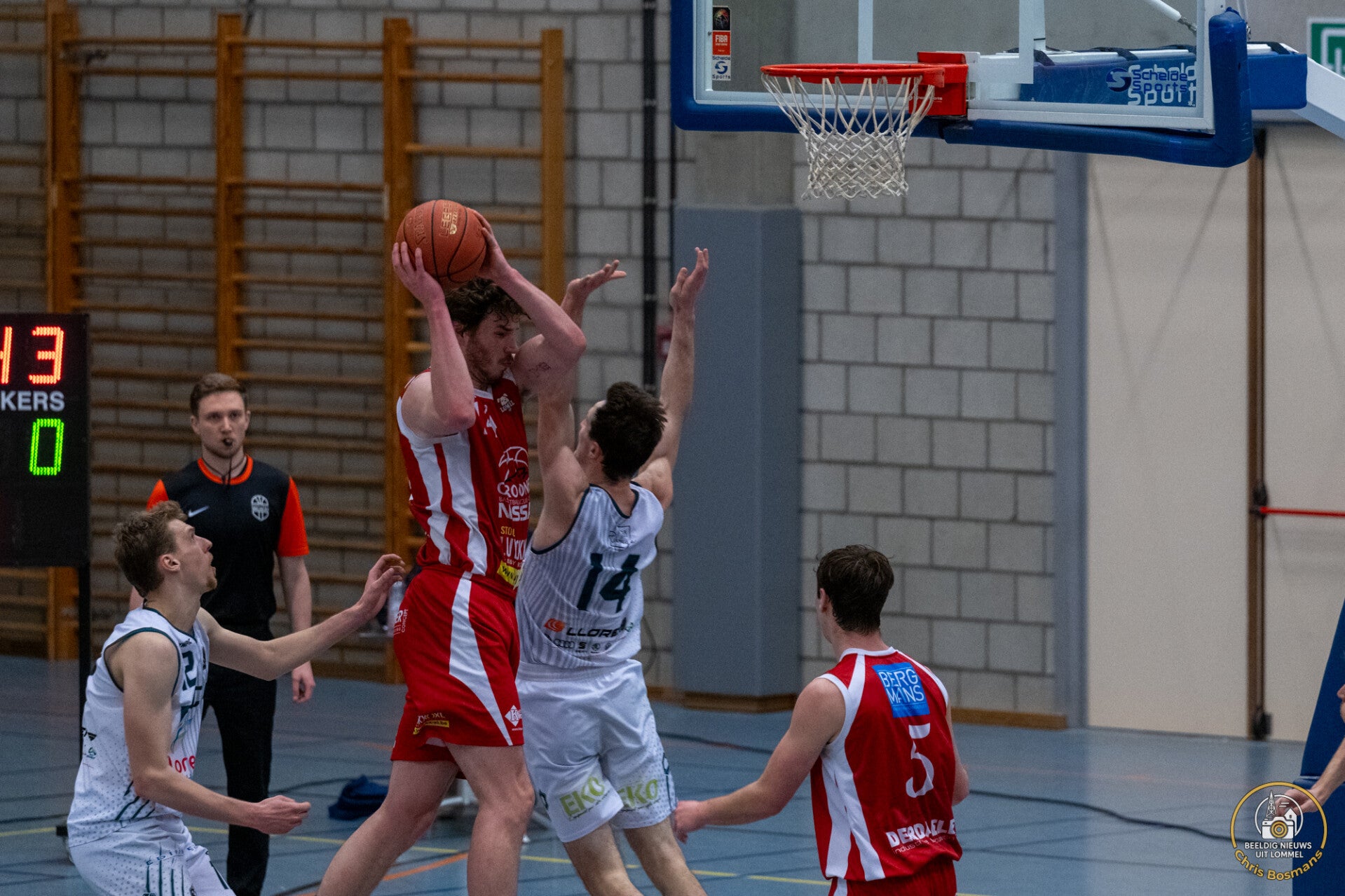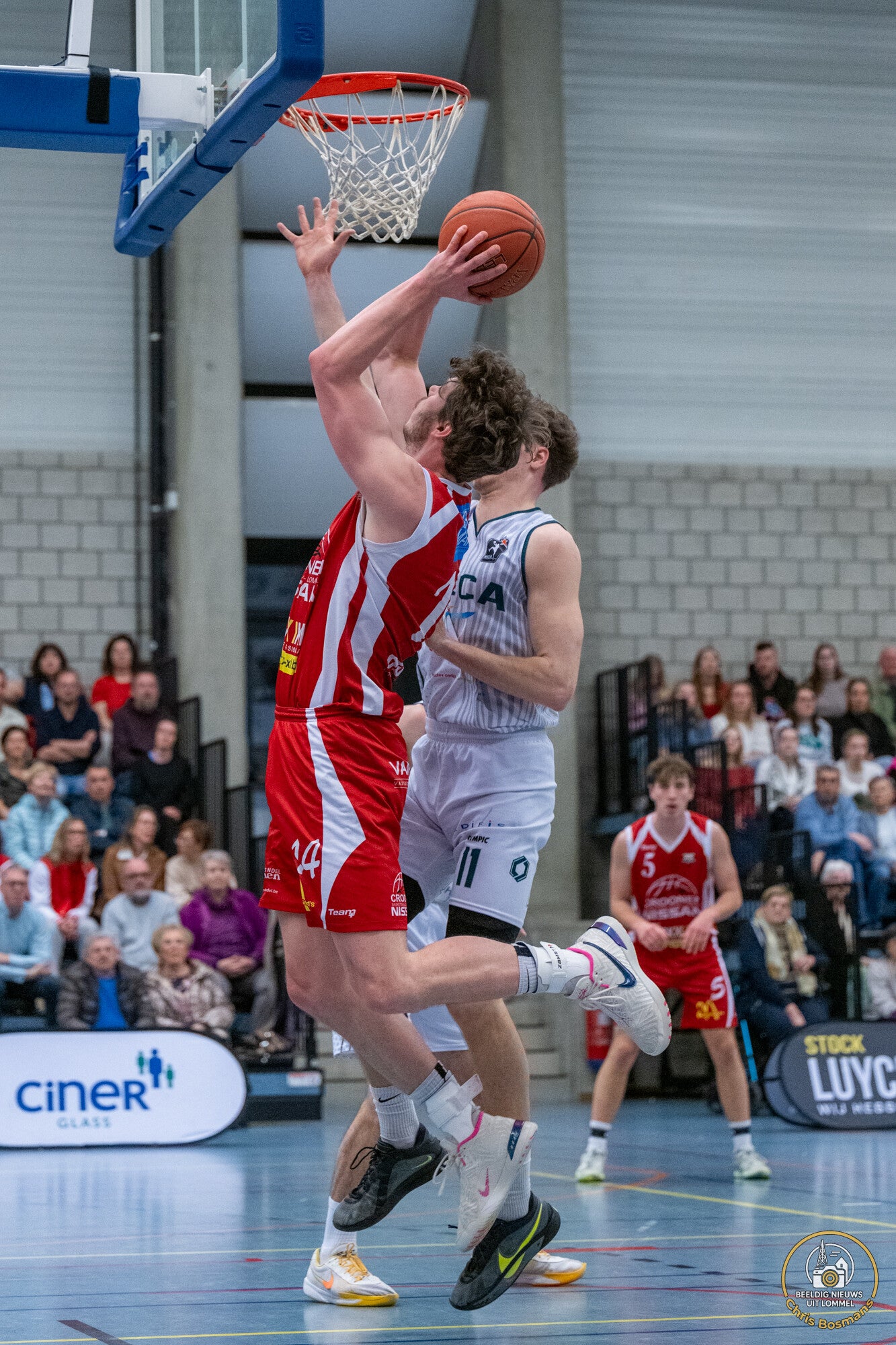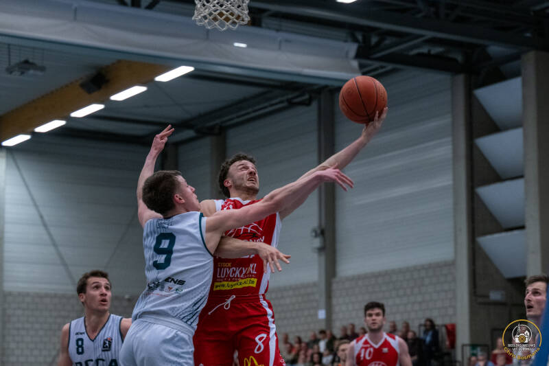 BBC Croonen Lommel heeft gisterenavond een bijzonder sterke prestatie neergezet door thuis te winnen van Neufchâteau. Voor de wedstrijd stonden de Luxemburgers met 17 overwinningen in 24 wedstrijden op een derde plaats, terwijl Lommel met 15 zeges uit 22 matchen vierde stond. Door de nederlaag van GUCO Lier op het veld van Antwerp Giants B schuift Neufchâteau op naar de tweede plaats in het klassement, voorbij Lier. Lommel blijft dankzij deze winst vierde en volgt op vier punten van leider CB Liège. (Foto's Chris Bosmans)