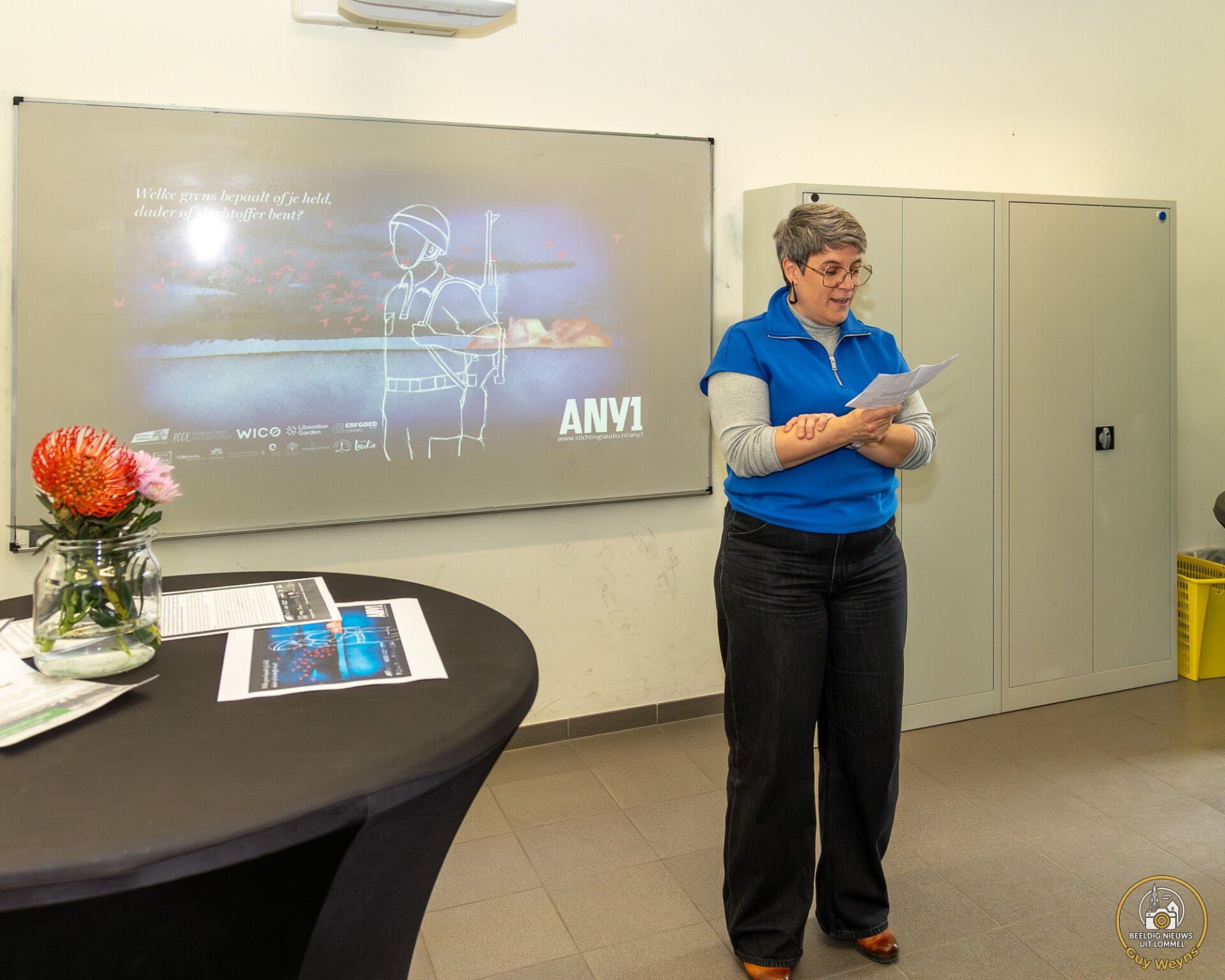 Directrice Tina Hendrickx (foto 1 onder) beet de spits af en benadrukte meteen het belang van het initiatief. Volgens haar sluit Any1 naadloos aan bij waar de school voor staat: onderwijs dat verder gaat dan kennisoverdracht alleen. “We willen jongeren leren om met een open blik naar geschiedenis en actuele conflicten te kijken, om kritisch te denken en om voorbij zwart-witdenken te durven gaan,” klonk het. Ze onderstreepte dat het vandaag niet evident is om jongeren te vormen tot genuanceerde denkers, zeker in een tijd waarin algoritmes en polarisatie vaak het debat bepalen. Projecten zoals Any1 creëren volgens haar ruimte voor dialoog, empathie en reflectie.