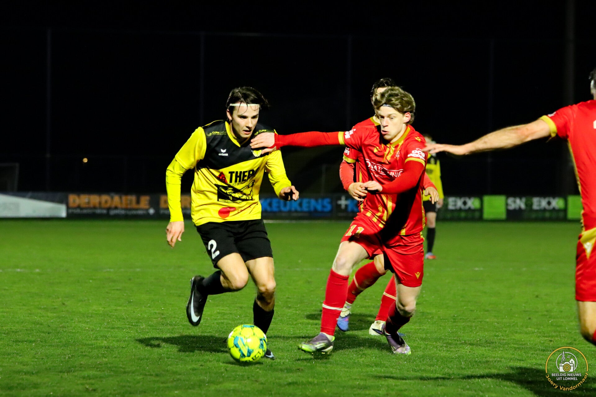 Gisterenavond ontving Lutlommel VV in eigen huis het nummer elf uit de rangschikking, Kabouters Opglabbeek. In de heenronde in Opglabbeek, nam LVV er de drie punten mee naar huis na een vlotte 0-5 overwinning. Positieve vooruitzichten die niet resulteerden in een nieuwe overwinning. Althans leek het er in de aanvangsfase wel naar. Lutlommel creëerde een paar degelijke doelkansen, trof hierbij eenmaal de paal, maar wanneer Niels Vanhelden de bal op het hoofd van Daan Maes slingerde, kwam het op een dat moment verdiende 1-0 voorsprong (grote foto). (Foto's Joery Vandormael)