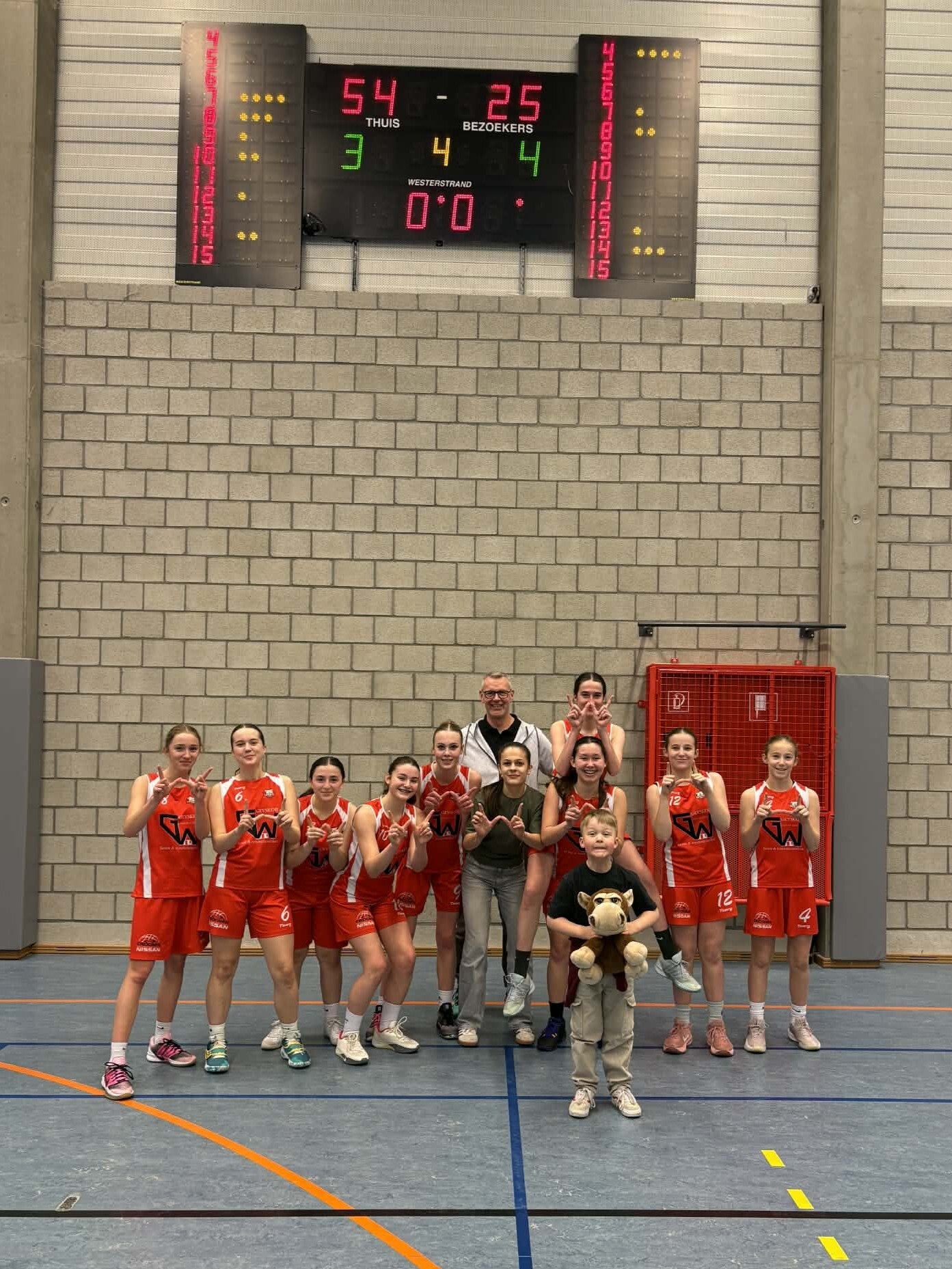 Tot slot zorgden ook de jongste meisjes van de M12A (foto 4 onder) voor een knappe prestatie. Op verplaatsing in Peer namen ze het zaterdag op tegen een jongensploeg. Na een evenwichtige eerste helft schakelden de Lommelse meisjes een versnelling hoger. Met sterk teamwork en veel inzet domineerden ze de tweede helft volledig en sloten ze de wedstrijd af met een overtuigende 31-55 overwinning.