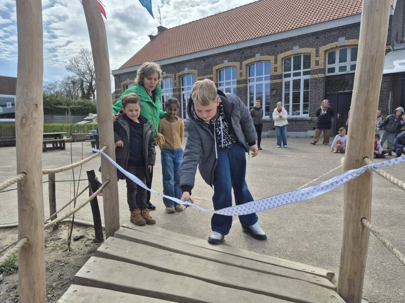 In de namiddag viel er op Werkplaatsen iets bijzonders te beleven. Daar werd met veel enthousiasme de nieuwe groene speelplaats officieel geopend (grote foto). De kinderen kunnen er vanaf nu volop op ontdekking gaan via speelse paadjes, stapstenen en trappen. Hoewel het nog even wachten is tot alle plantjes in volle bloei staan, is nu al duidelijk dat deze plek zal uitgroeien tot een prachtige en avontuurlijke omgeving.