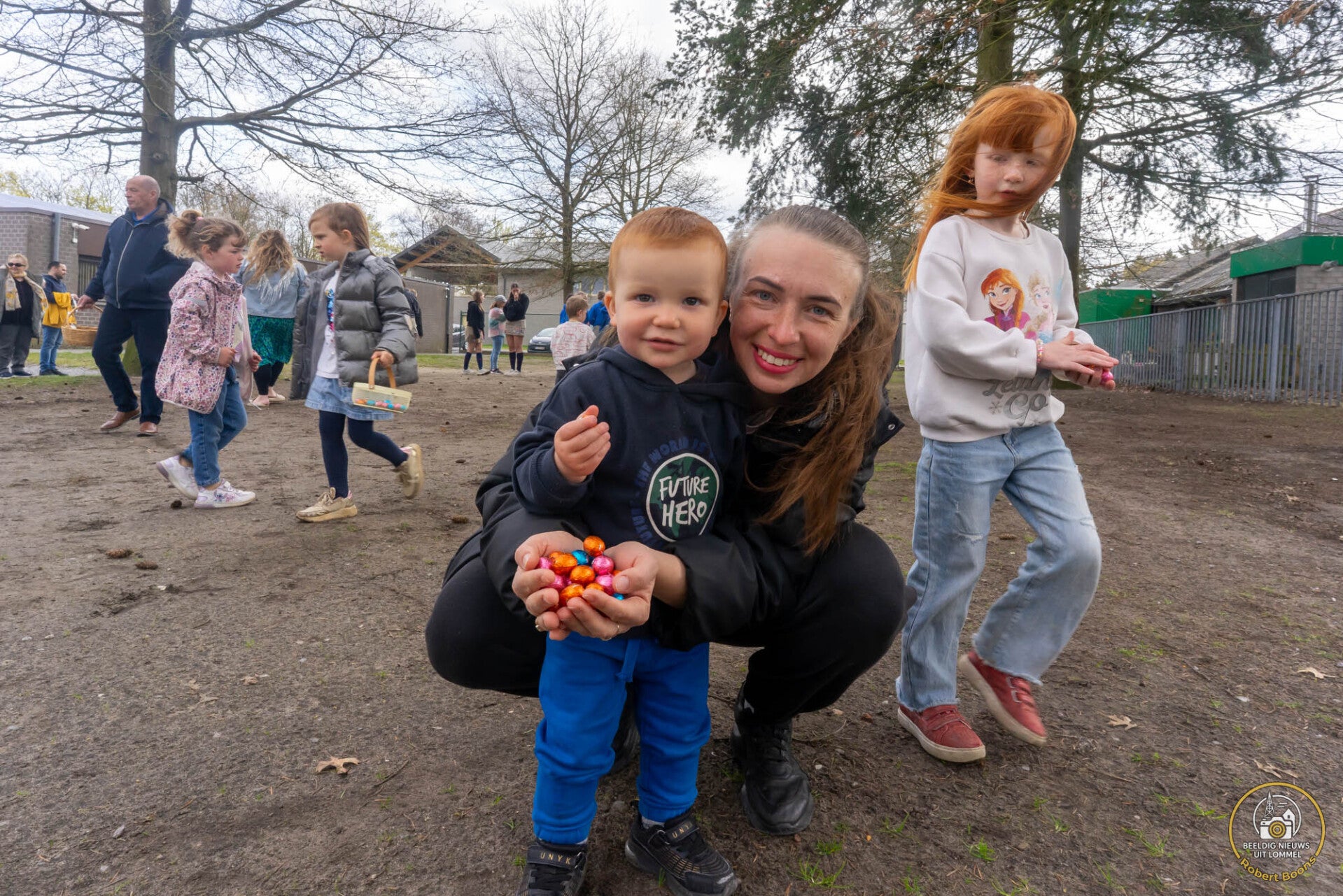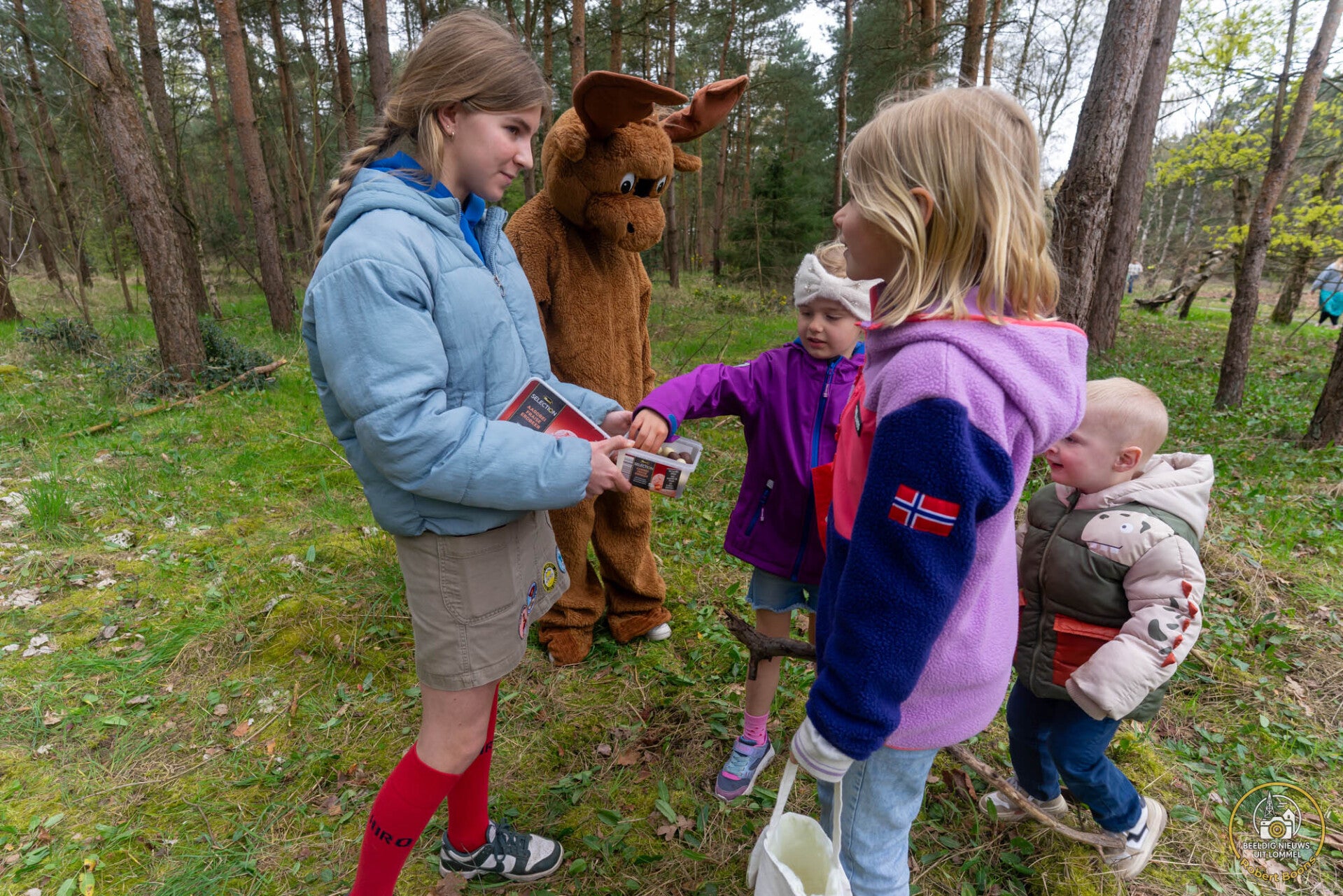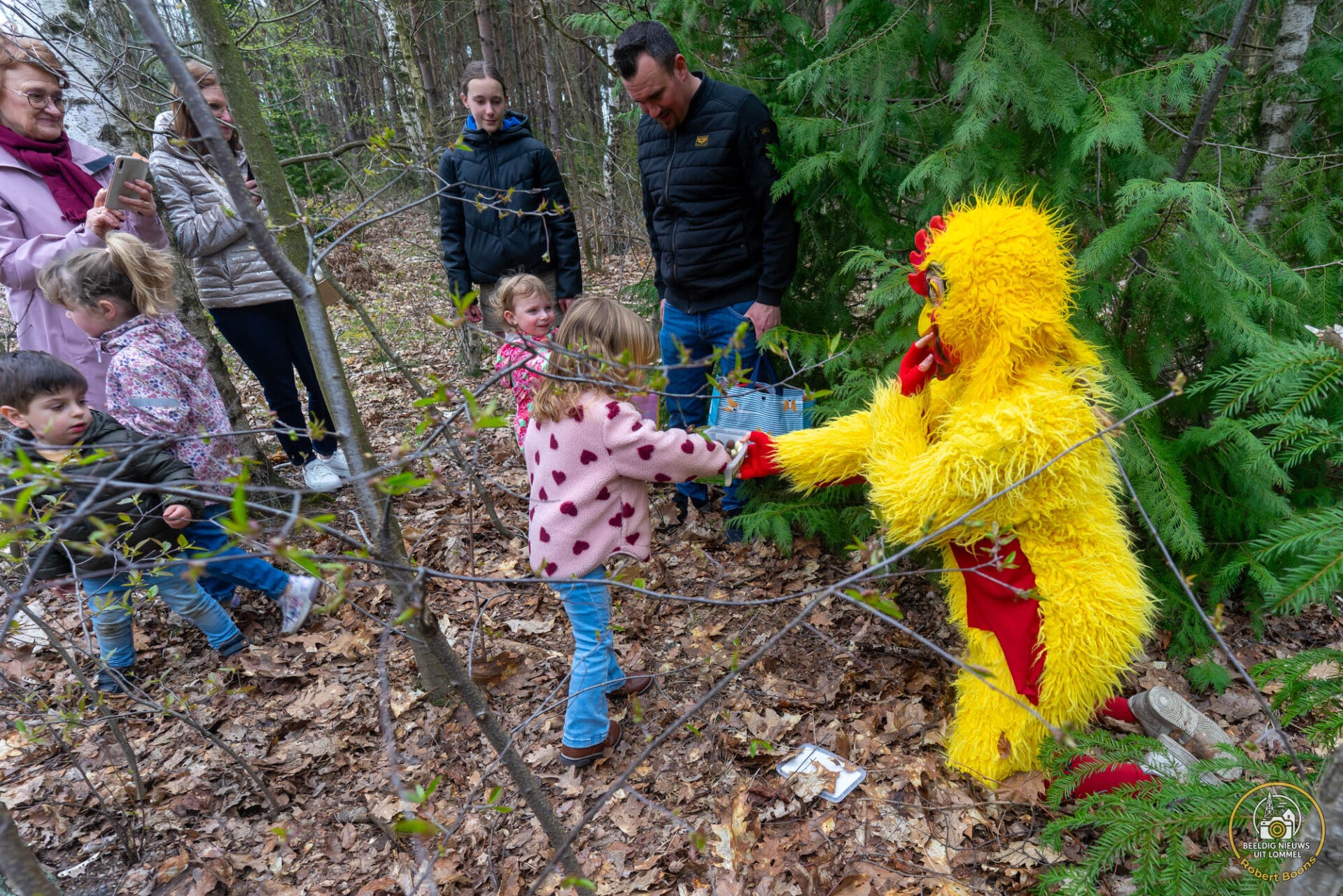 De aftrap werd gegeven met een avontuurlijke tocht van zo’n 3 kilometer. Maar dit was geen gewone wandeling… onderweg moesten de kinderen op speurtocht naar vijf levensgrote dieren. De paashaas liet zich natuurlijk niet zomaar vinden, en ook een kip, een eekhoorn, een verdwaald rendier en zelfs een kat hadden zich verstopt. Wie goed zocht, werd beloond, want de dieren hadden elk een leuke verrassing bij zich. Dat zorgde voor heel wat blije gezichten en enthousiaste speurneuzen!