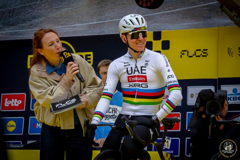 Stefan Ackx ging zich nestelen op de Antwerpse Grote Markt, waar de wielrenners aan het publiek voorgesteld werden en de koers vertrok. Hij moet al vroeg ter plaatse geweest zijn, want hij had zich een mooi plekje dichtbij het podium weten te bemachtigen waar hij het gebeuren goed in beeld kon brengen. Zo kon hij onder andere Remco Evenepoel, Wout Van Aert en de latere winnaar Tadej Pogacar (grote foto) met zijn camera vangen.