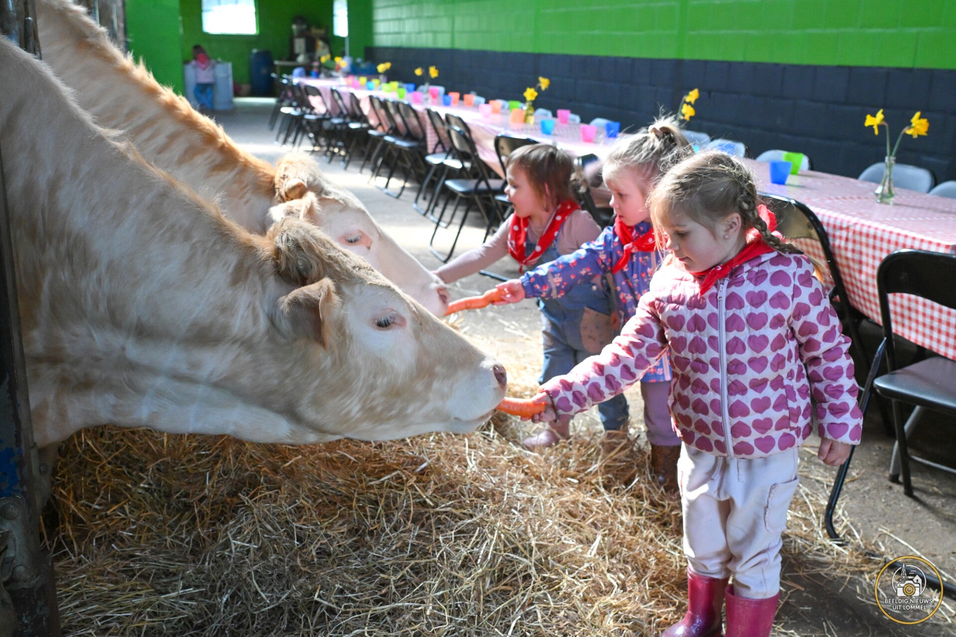 De jongste deelnemers genoten volop van het contact met de dieren. Ze konden konijntjes en schapen knuffelen, de koeien eten geven – met wortelen, hun absolute favoriet – en ook de varkens borstelen. Daarnaast was er aandacht voor het verzorgen van de dieren en konden de kinderen naar hartenlust boerderijspelletjes spelen en mooie kleurplaten maken. Ook een wandeling in de omgeving van de boerderij stond op het programma, waarbij de kinderen de natuur van dichtbij konden beleven.