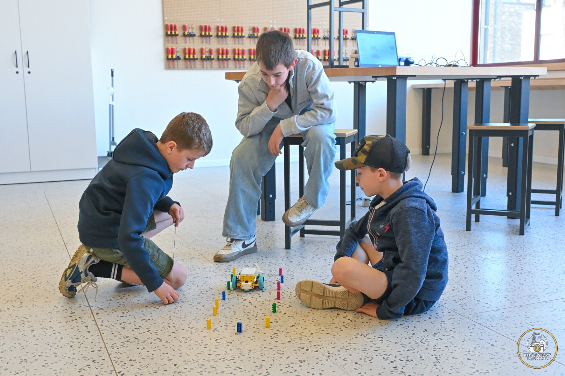 In kleine groepen ontdekten de kinderen eerst de basisprincipes. Ze leerden hoe een robot moet rijden, hoe afstanden ingeschat worden en hoe bewegingen correct uitgevoerd kunnen worden. Vervolgens gingen ze aan de slag met de officiële LEGO League-mat, waarop verschillende opdrachten uitgevoerd moesten worden.