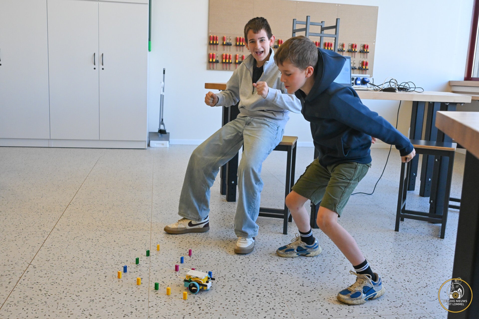 Die opdrachten vroegen niet alleen technisch inzicht, maar ook precisie. Zo moesten de robots bijvoorbeeld obstakels overwinnen, voorwerpen verplaatsen of op exact de juiste plaats stoppen. Elke opdracht leverde punten op, waardoor de deelnemers uitgedaagd werden om hun robot zo efficiënt mogelijk te programmeren en aan te passen.