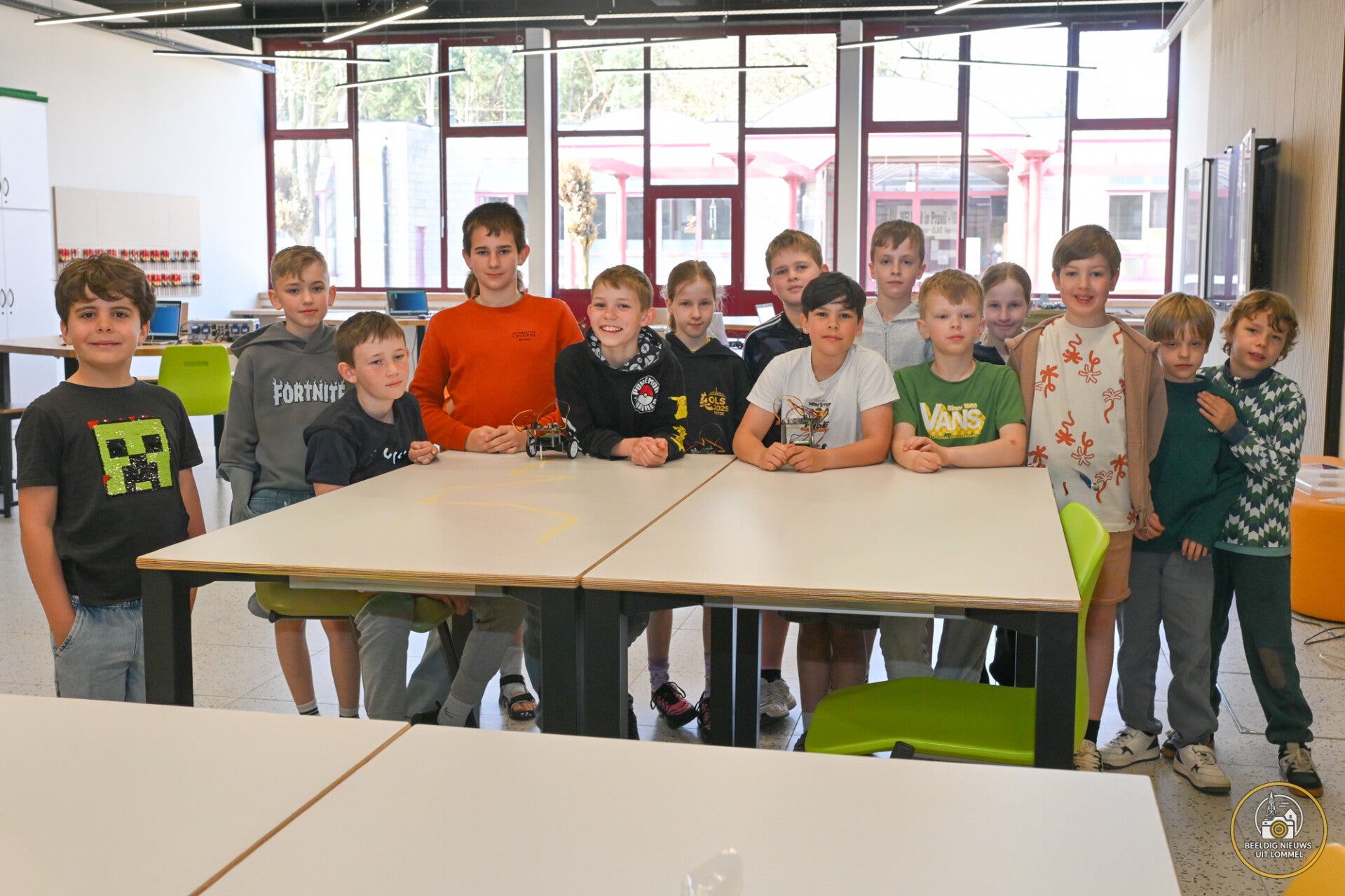 Daarna volgde een nieuwe uitdaging: het programmeren van een parcours. De kinderen moesten zelf uitzoeken hoe hun robot het traject correct kan volgen, wanneer hij moet draaien en hoe lang hij rechtdoor moet rijden. Na de basisopleiding was het nu vooral oefenen en bijsturen, om uiteindelijk het volledige parcours succesvol af te leggen.