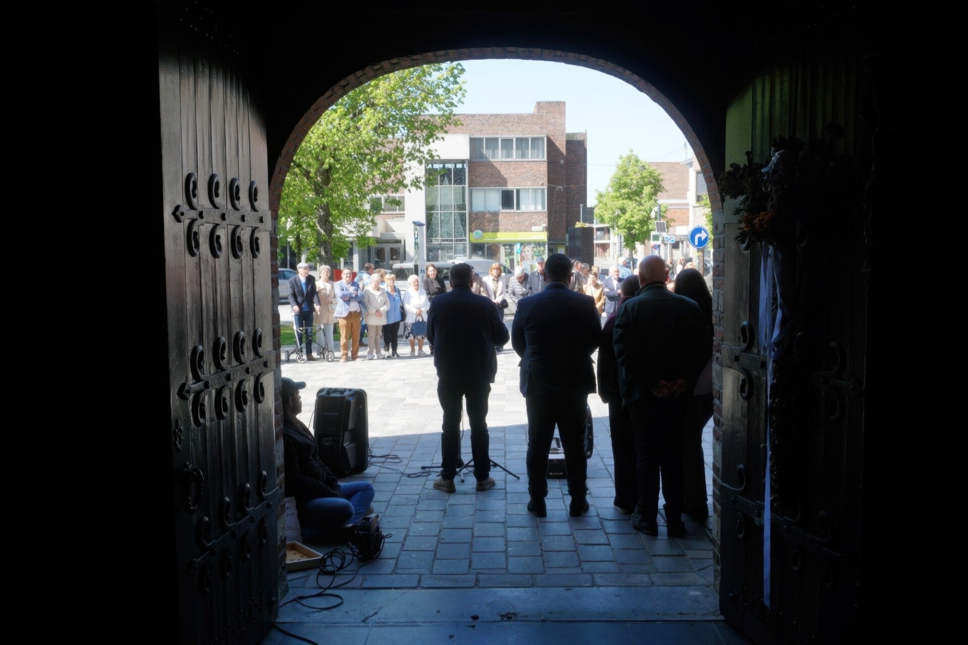 Zondagmiddag vond aan de hoofdingang van de Sint-Pietersbandenkerk in Lommel een ingetogen stiltecirkel voor vrede plaats. De bijeenkomst bracht verschillende aanwezigen samen die, te midden van wereldwijde spanningen, stilstonden bij het belang van vrede en verbondenheid.