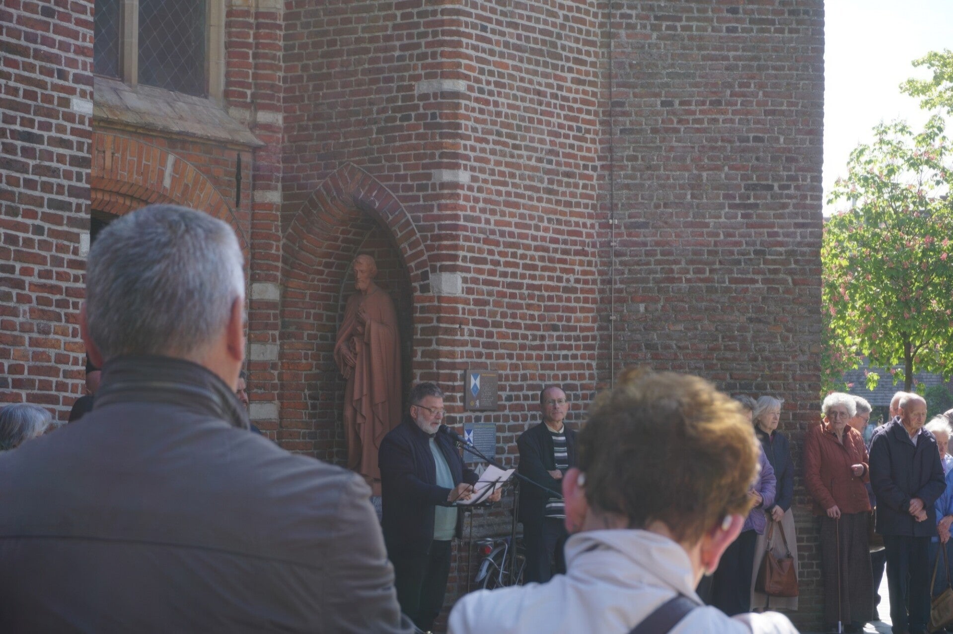 Een bijzonder moment was het gezamenlijk zingen van Dona Nobis Pacem, dat door de aanwezigen met overtuiging werd gebracht. Aansluitend volgde een periode van stilte in het hart van de stad, waarna een actuele parabel werd gedeeld.