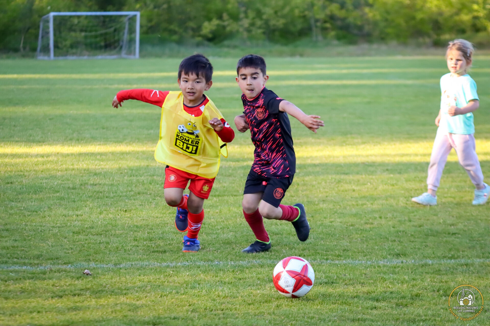 In totaal namen 19 kinderen deel aan de sessie, verdeeld over twee leeftijdsgroepen: 9 bij de U6 en 10 bij de U8. Opvallend was de aanwezigheid van 6 nieuwe spelertjes – vier jongens en twee meisjes – die hun eerste stappen op het veld zetten. Zij kwamen niet alleen uit de Kolonie zelf, maar ook uit de omliggende wijken zoals de Barrier en Heide-Heuvel, wat het bereik van de club mooi illustreert.